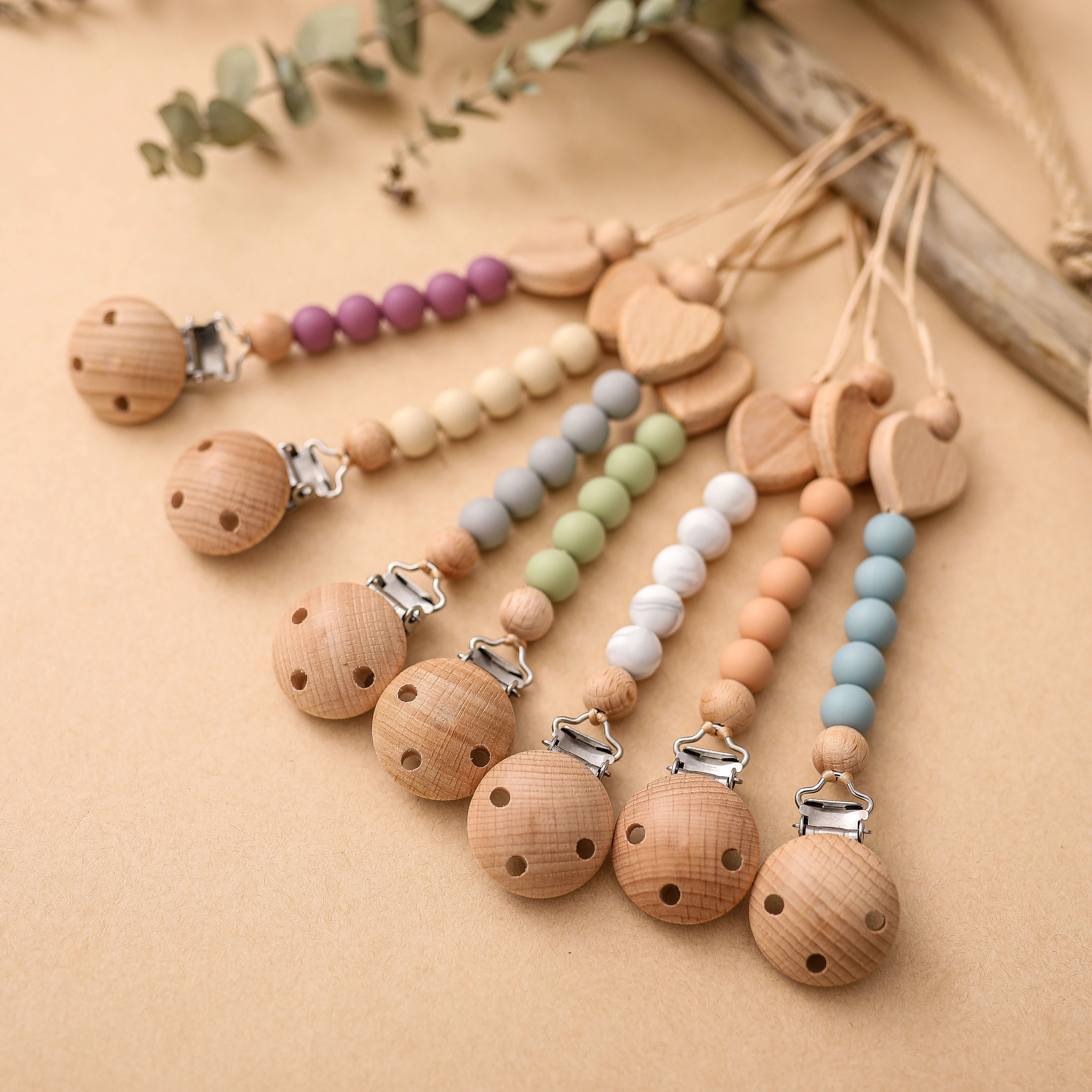 2 шт.компл. детская деревянная цепочка для соски-пустышки, силиконо...