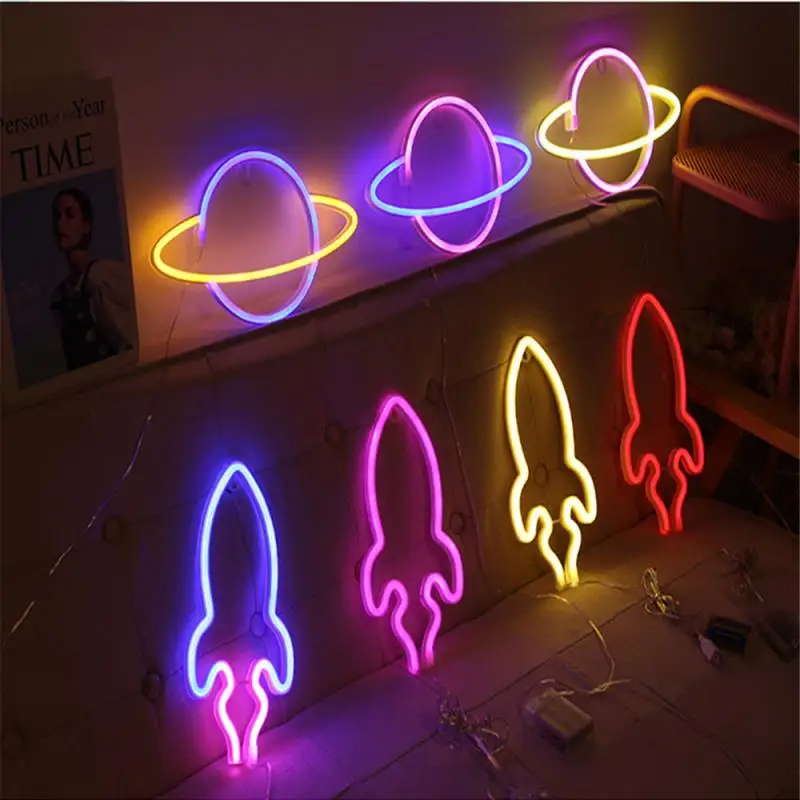 Светодиодный неоновая вывеска планета вспышки света домашний ракета светильник Спальня украшение висит неоновый светильник Семья вечерние праздничные украшения в подарок
