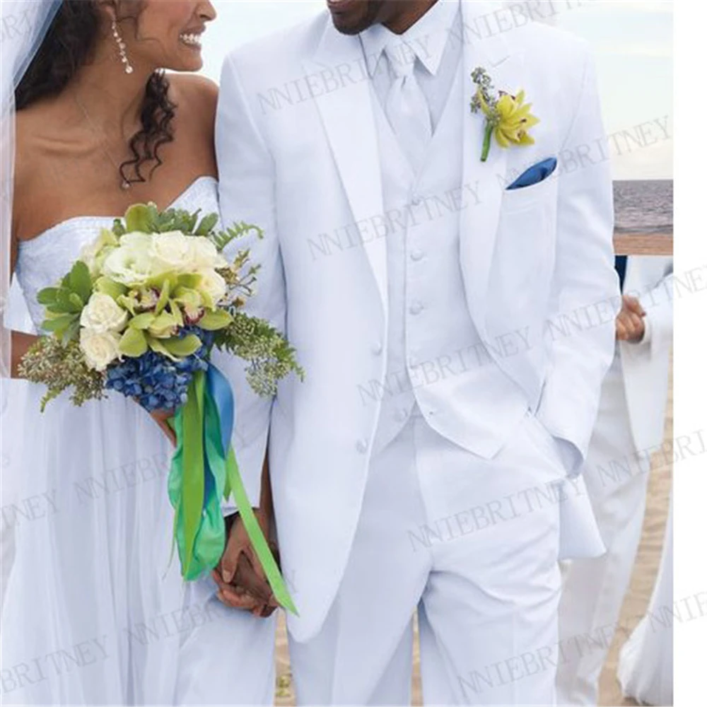 Белые мужские костюмы, смокинг для выпускного вечера, облегающие свадебные костюмы для жениха, мужской индивидуальный Блейзер Terno Masuclino, 3 предмета (пиджак + жилет + брюки)