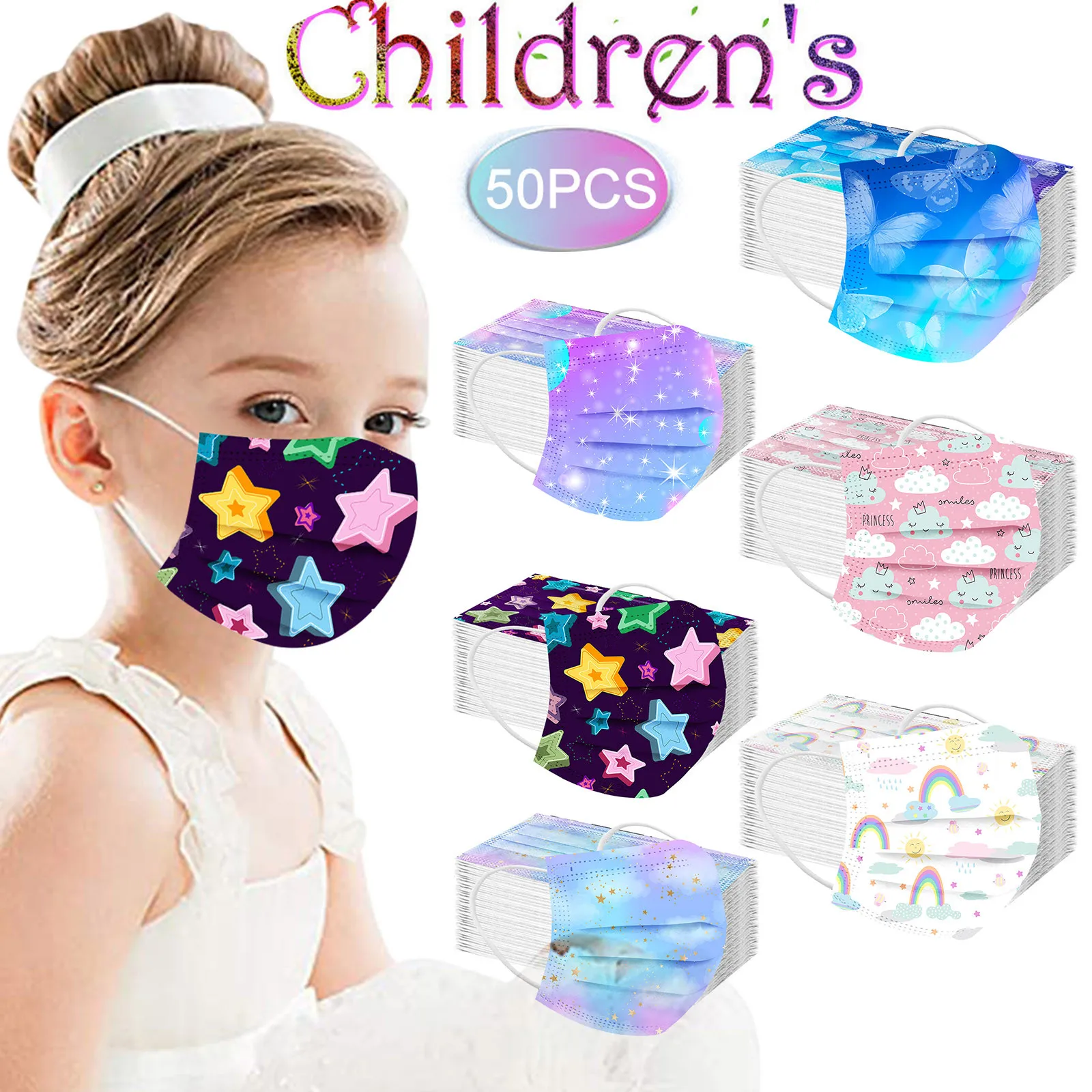 50 шт. в коробке Детский мультфильм одноразовые маски 3 Слои Детски...