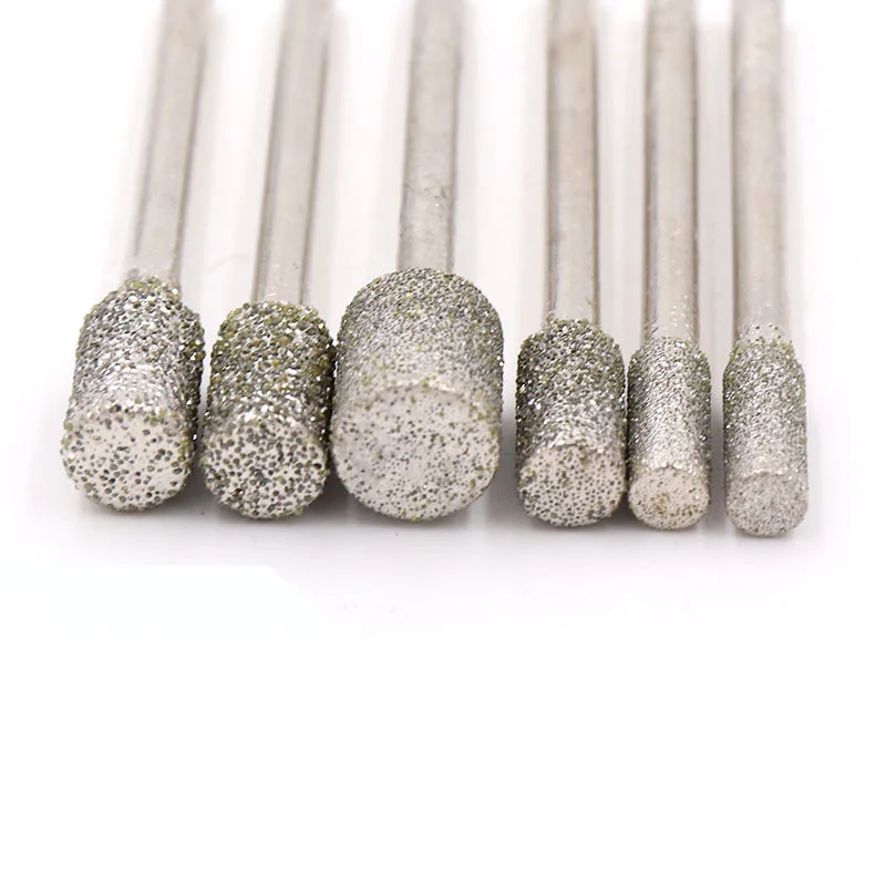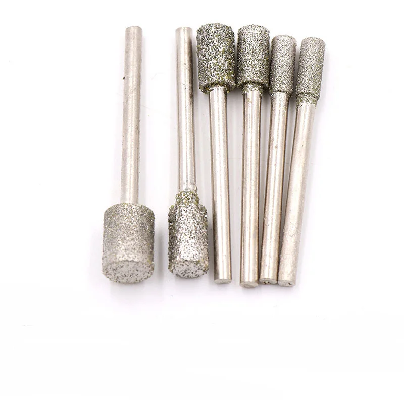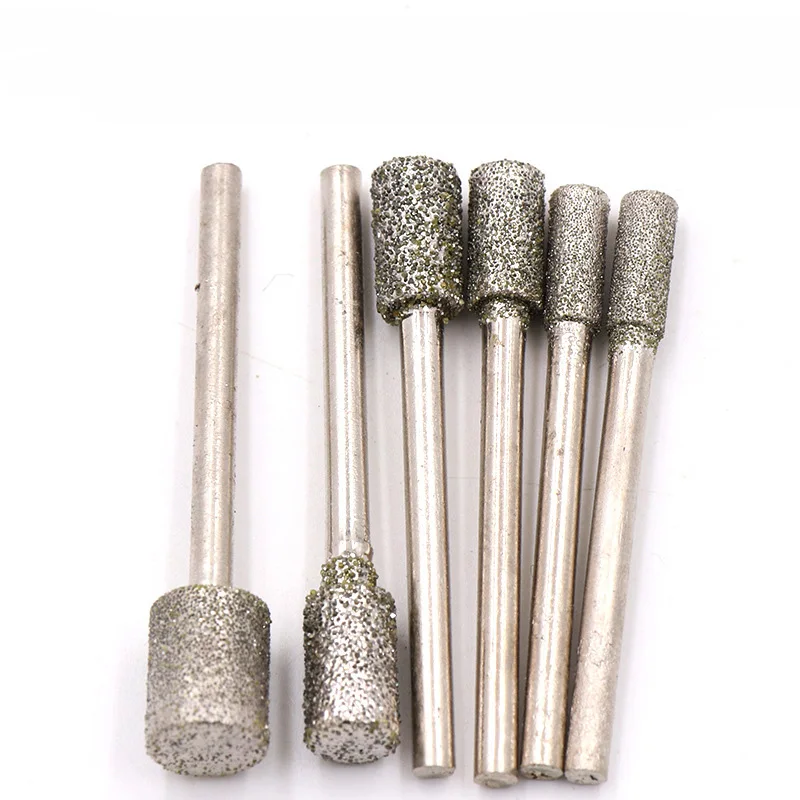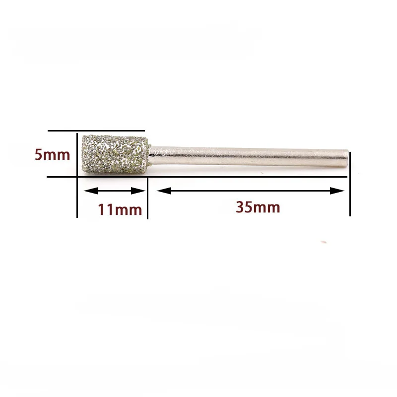 1 шт. Grit60 3 мм Цилиндрический хвостовик алмазная шлифовальная головка цилиндрические точки с покрытием резьба заусенцы лапидарные инструменты нефрит камень мрамор