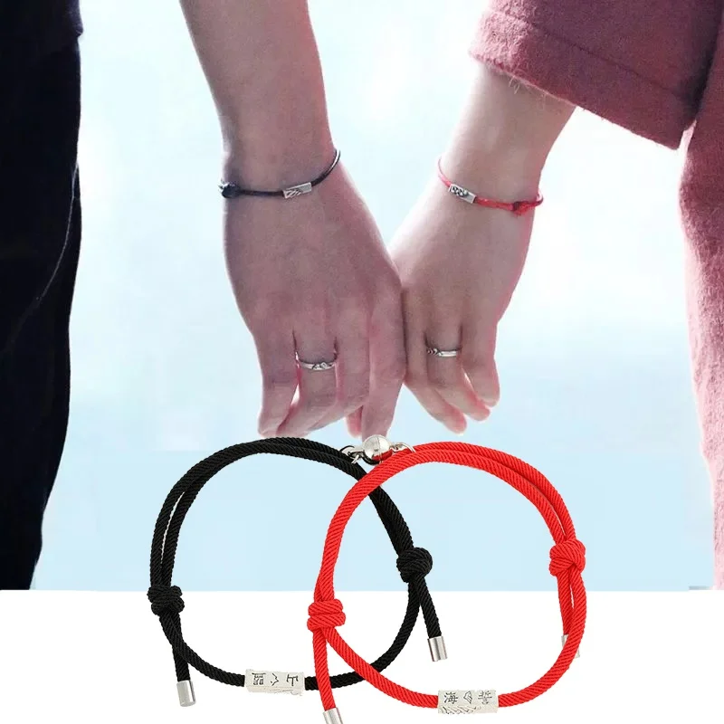 Плетеный браслет для пар разработан с магнитной застежкой. Когда они будут близки друг к другу, они будут соединяться друг с другом.