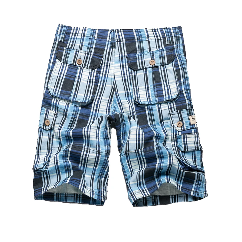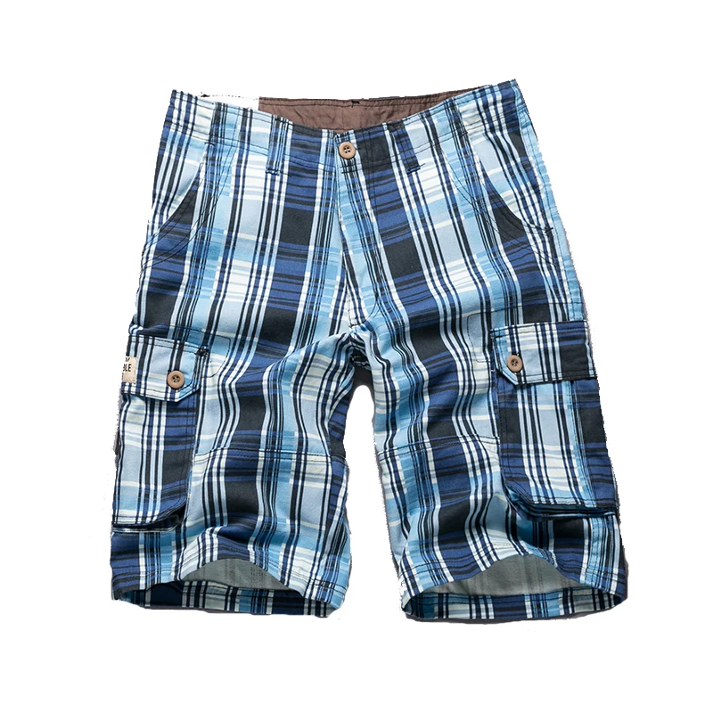 Шорты мужские в клетку 2021 хлопок, повседневные пляжные груз мужск...