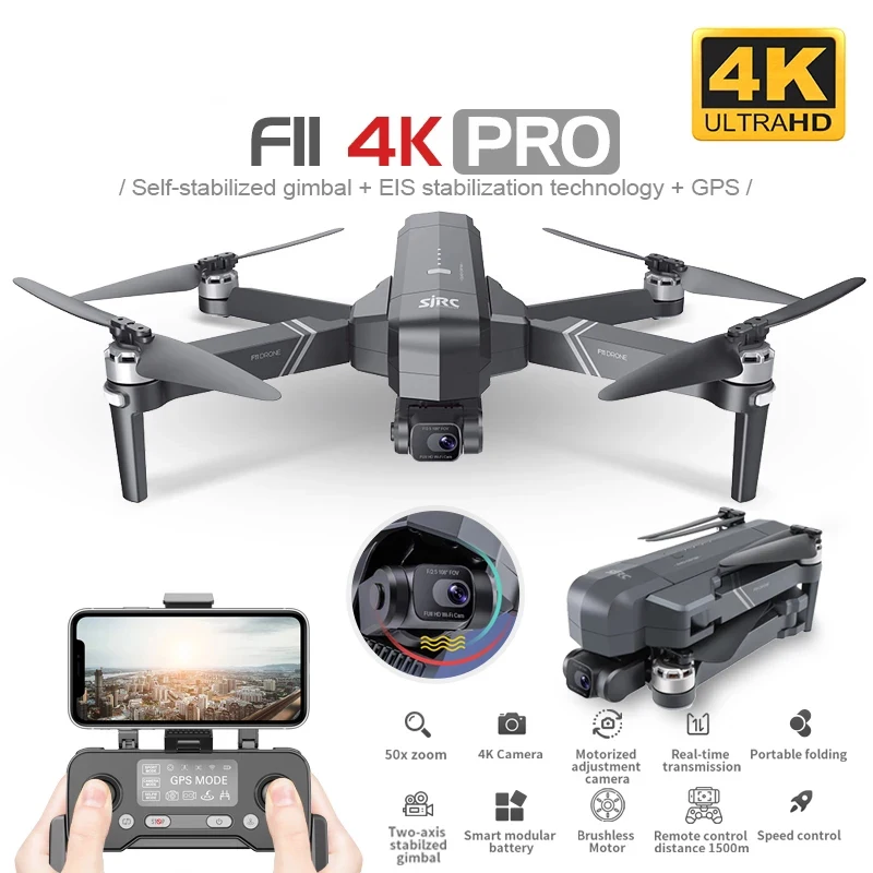Дрон SJRC F11F11S PRO 4K GPS с Wi-Fi FPV 4K HD-камерой двухосевой п...