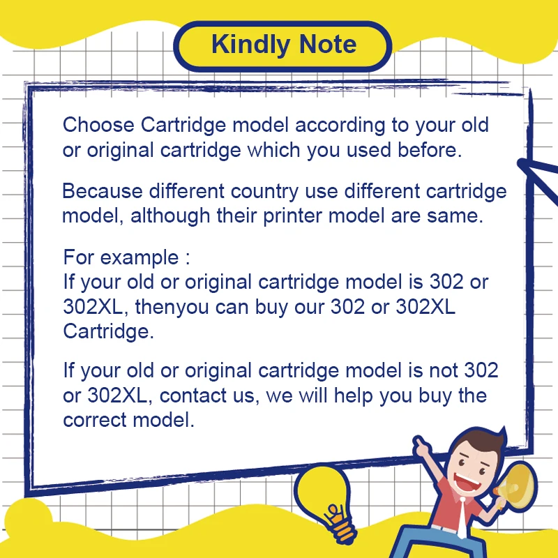 Cartridge numberReplacement For HP302 BK for HP302 Tri-Color