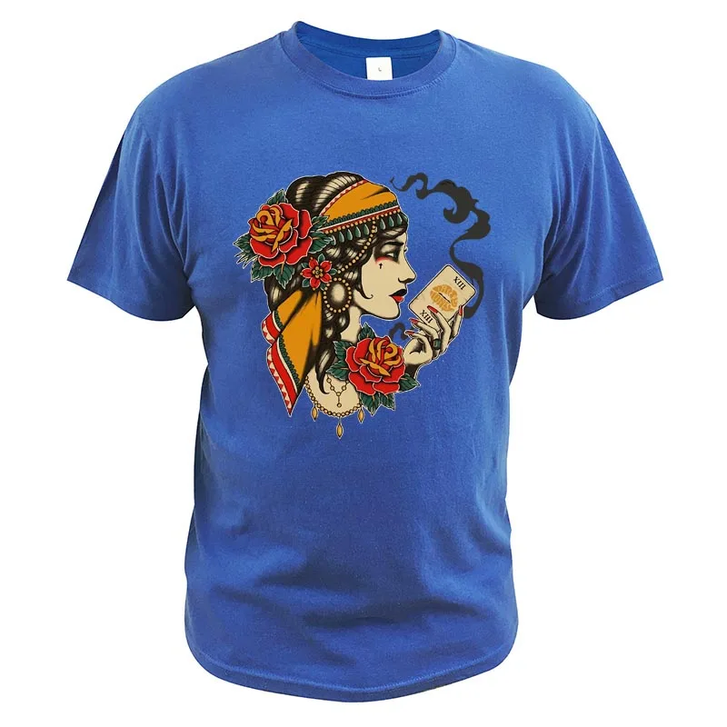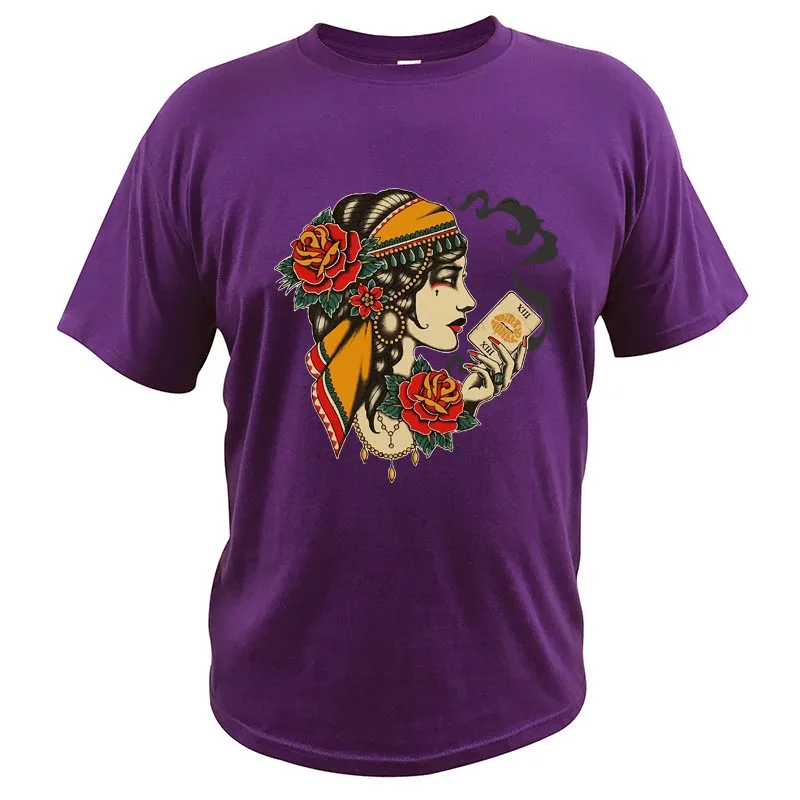 Грязный мед гадалка Таро карты Футболка с принтом "The футболка ЕС Размеры 100% хлопковая футболка с короткими рукавами и круглым вырезом, мягкая футболка