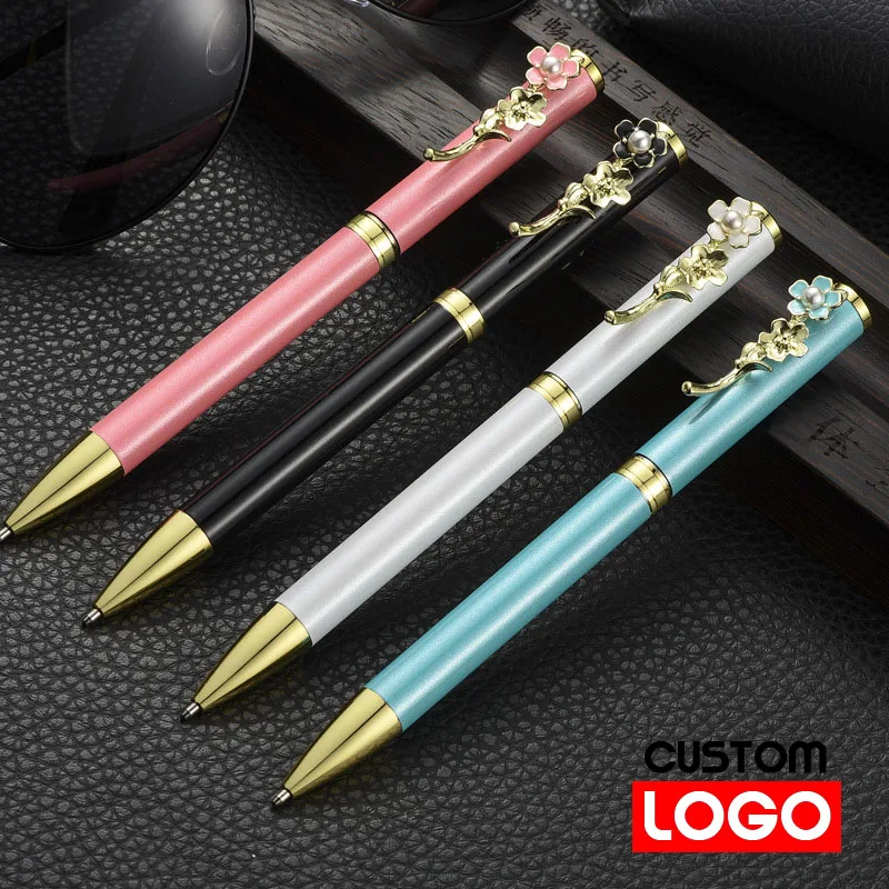 Металлическая перламутровая Цветочная ручка, ручка с знаком, индивидуальный логотип, гравировка текста, четыре цвета на выбор