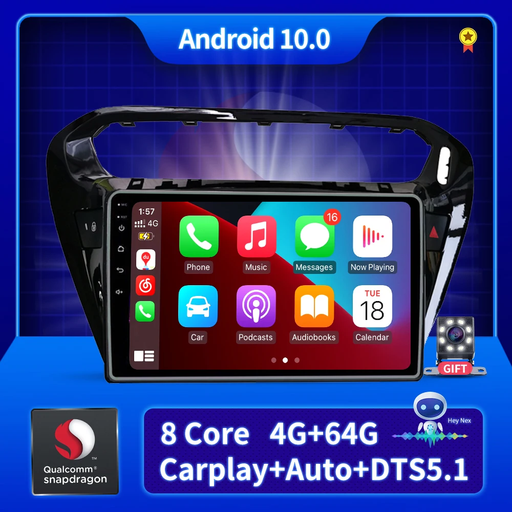 Андроид 10 для Peugeot 301 для Citroen C-Elysee CElysee 2012-2016 4G WI-FI Carplay CarRadio мультимедиа gps-навигация, dvd-плеер