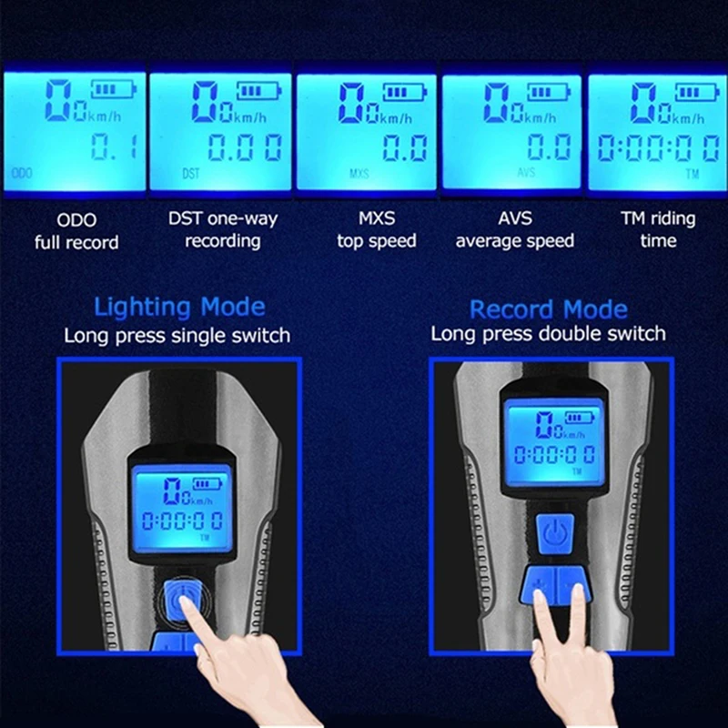 Велосипесветильник, водонепроницаемый, USB, перезаряжаемый, спидометр
