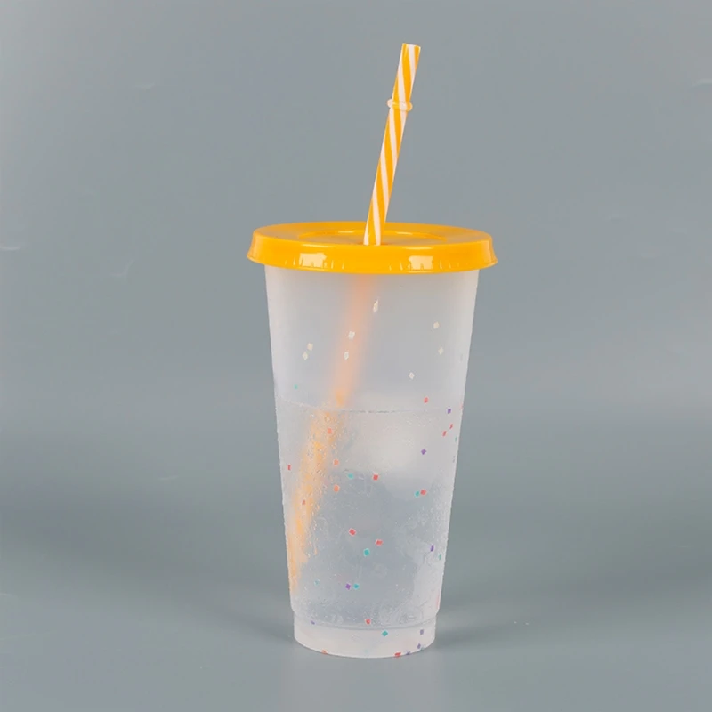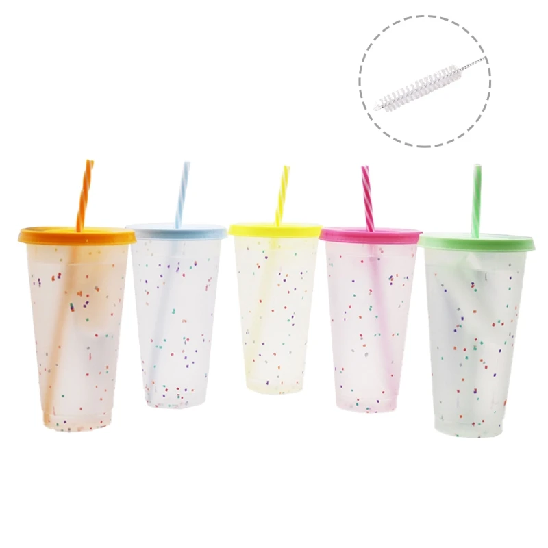 5 шт. многоразовые 720 мл Цвет изменение Радужная чашка с радугой трубочкой и крышкой многоразовая пластиковая чашка с трубочкой, Цвет крошки для детей