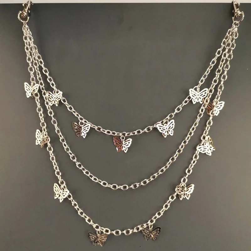 Цепочка в стиле панк-рок унисекс для брюк с бабочкой, трехслойные м...