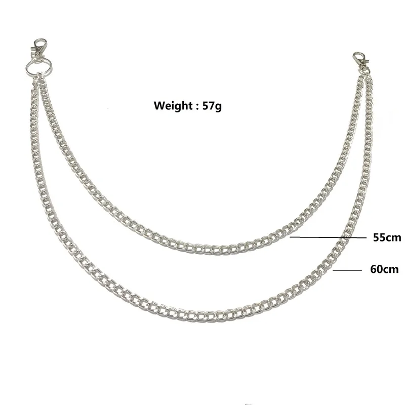 Женская металлическая цепочка для джинсов, в стиле хип-хоп, панк, Золотая, серебряная, для штанов, рок, ювелирные изделия, цепь с плетением бабочка, двухслойная, брелок для ключей в виде пояса, 201