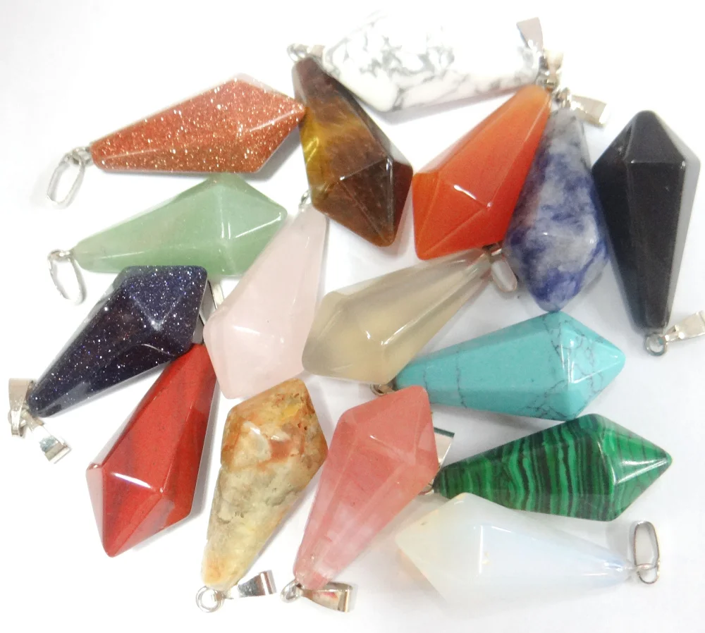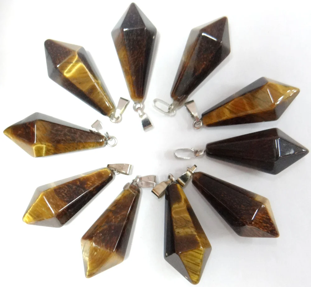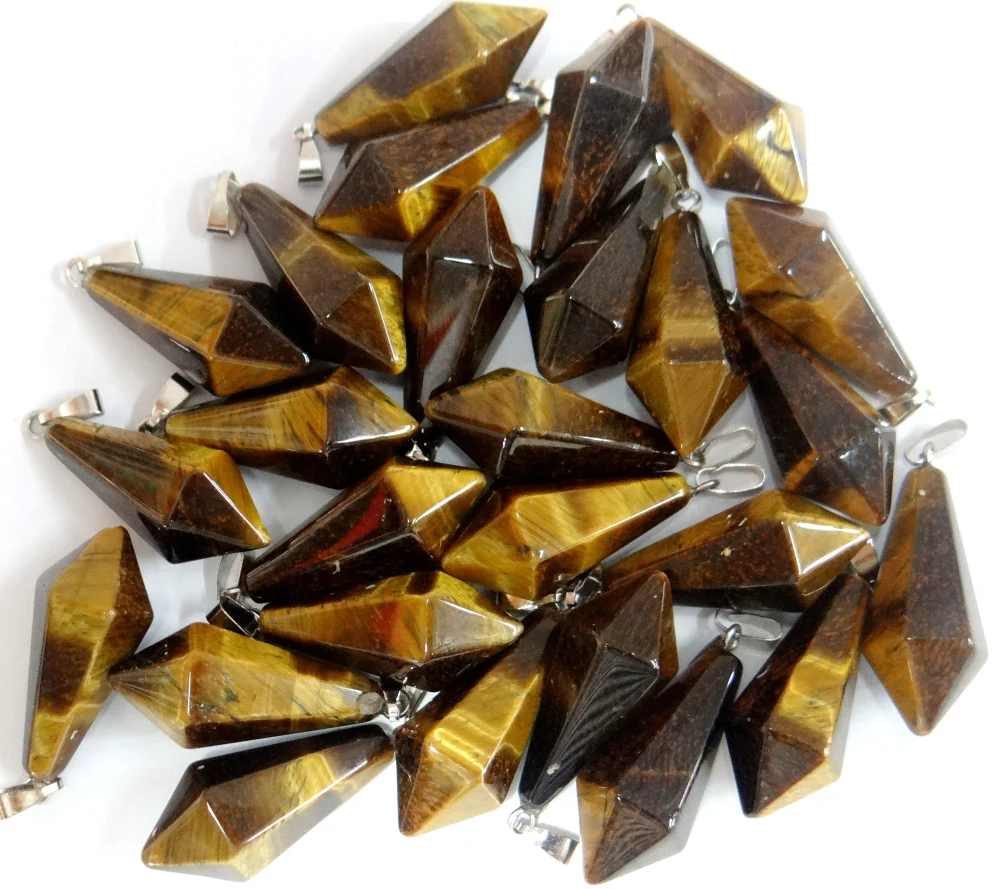 Натуральный камень Бирюзовый Кристалл Кварца тигровый глаз лазурит Маятник Шестигранная Пирамида кулон для бижутерии, материал для рукоделия ожерелье 12 шт.