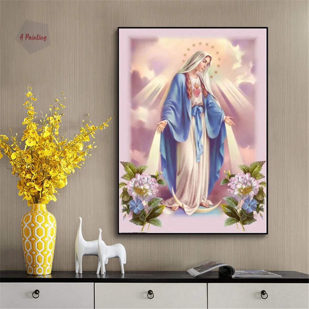 Алмазная живопись Huacan, картина с портретом Богородицы, 5D Вышивк...