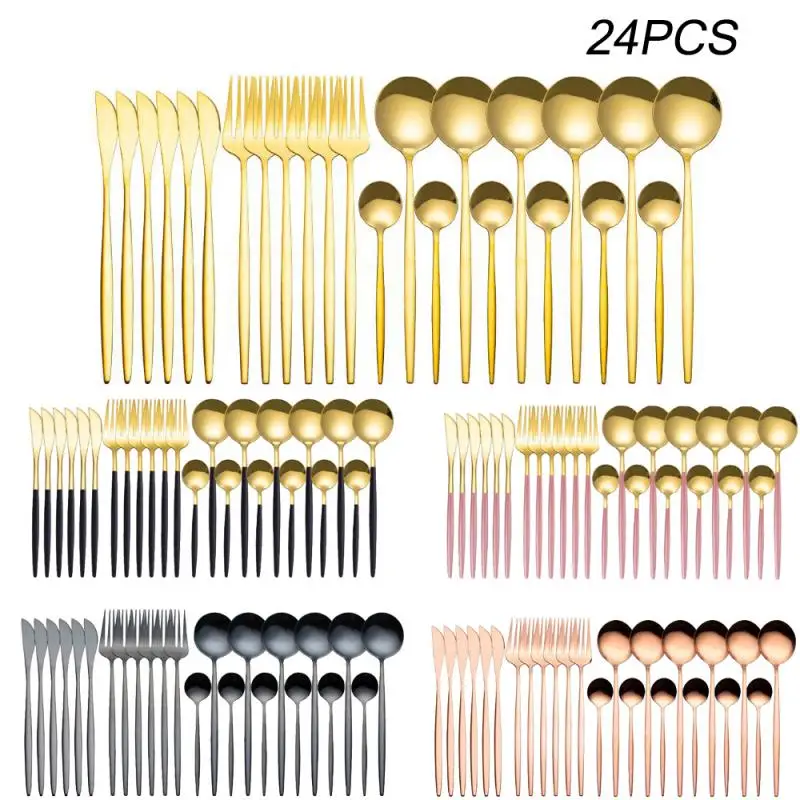 24 шт.компл. золото столовая посуда набор столовых приборов Ножи торт фрукт вилка Кофе ложка, столовые приборы из серебра Нержавеющаясталь вечерние посуда набор
