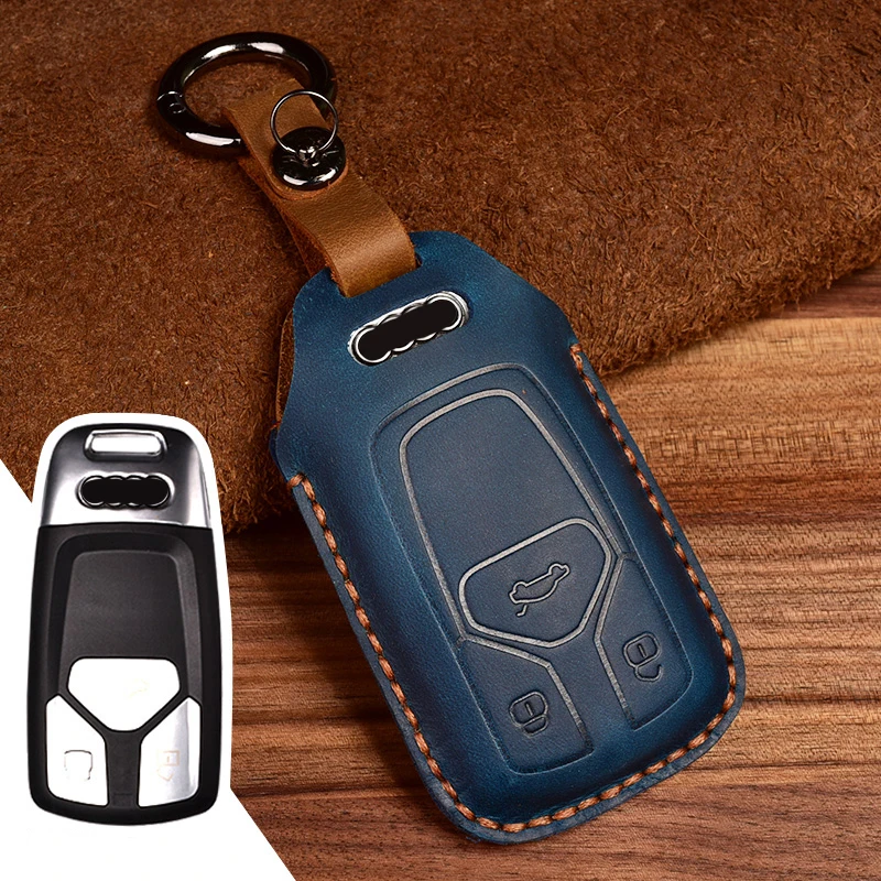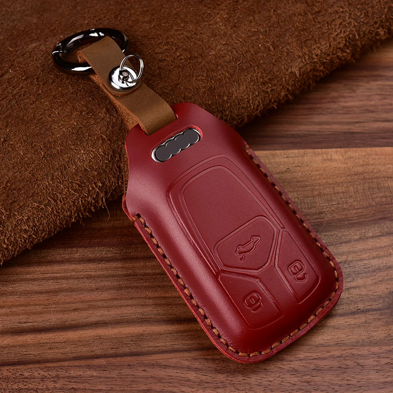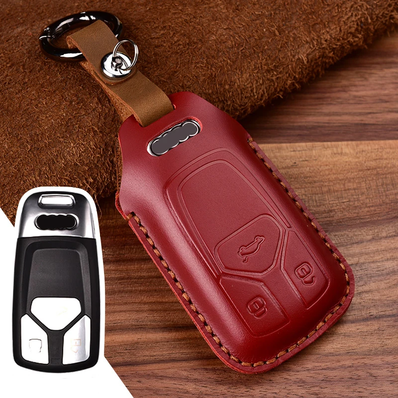 Кожаный чехол для автомобильного ключа, чехол-держатель для Audi A4 B9 Q5 Q7 TT TTS 8S, 3 кнопки, автомобильный смарт-ключ, кольцо для защиты
