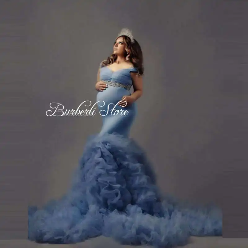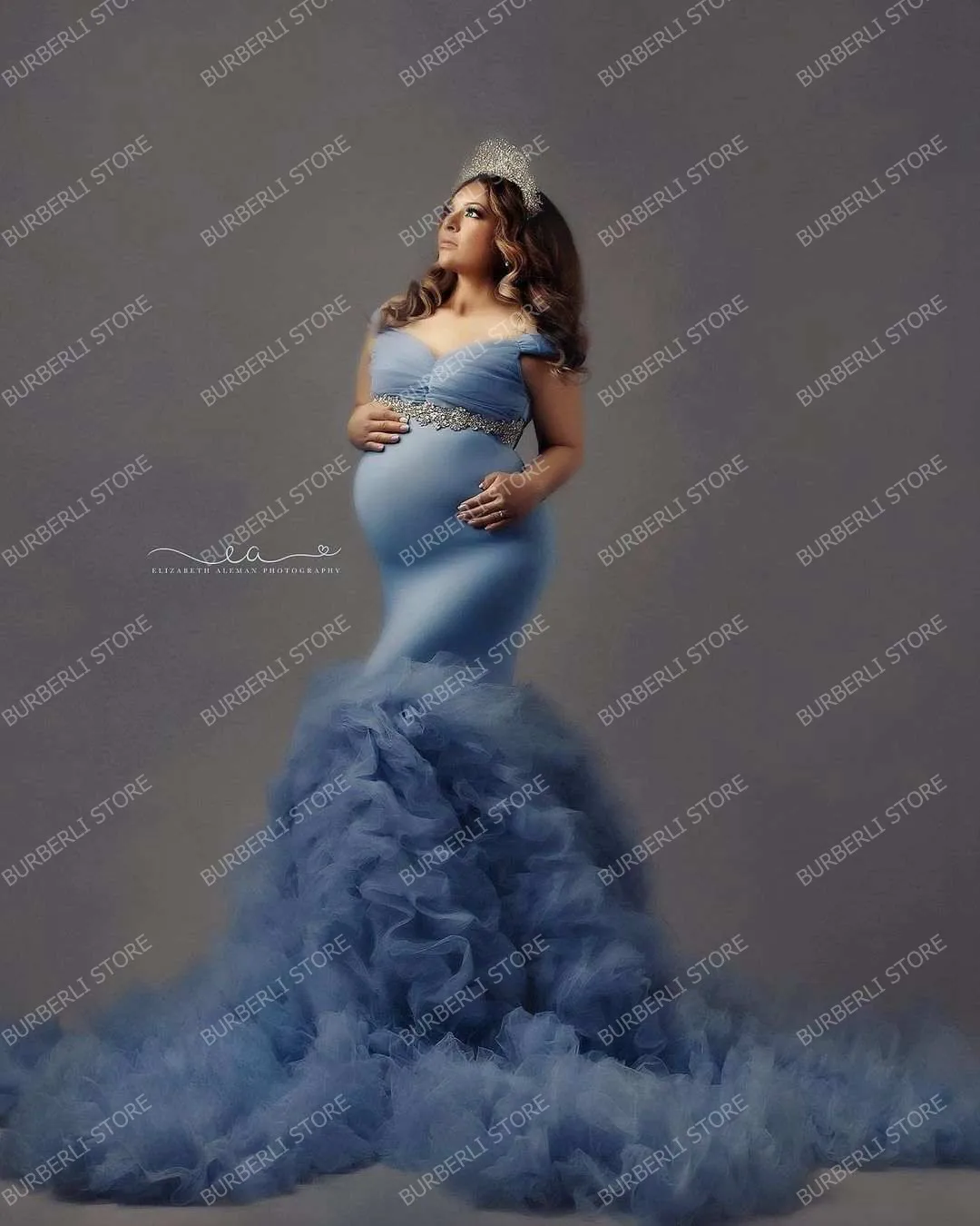 Пышное Тюлевое платье с оборками и юбкой-годе, Длинные свадебные платья для беременных женщин, красивое платье с бусинами и кристаллами на талии для беременных, платья с V-образным вырезом без рукавов