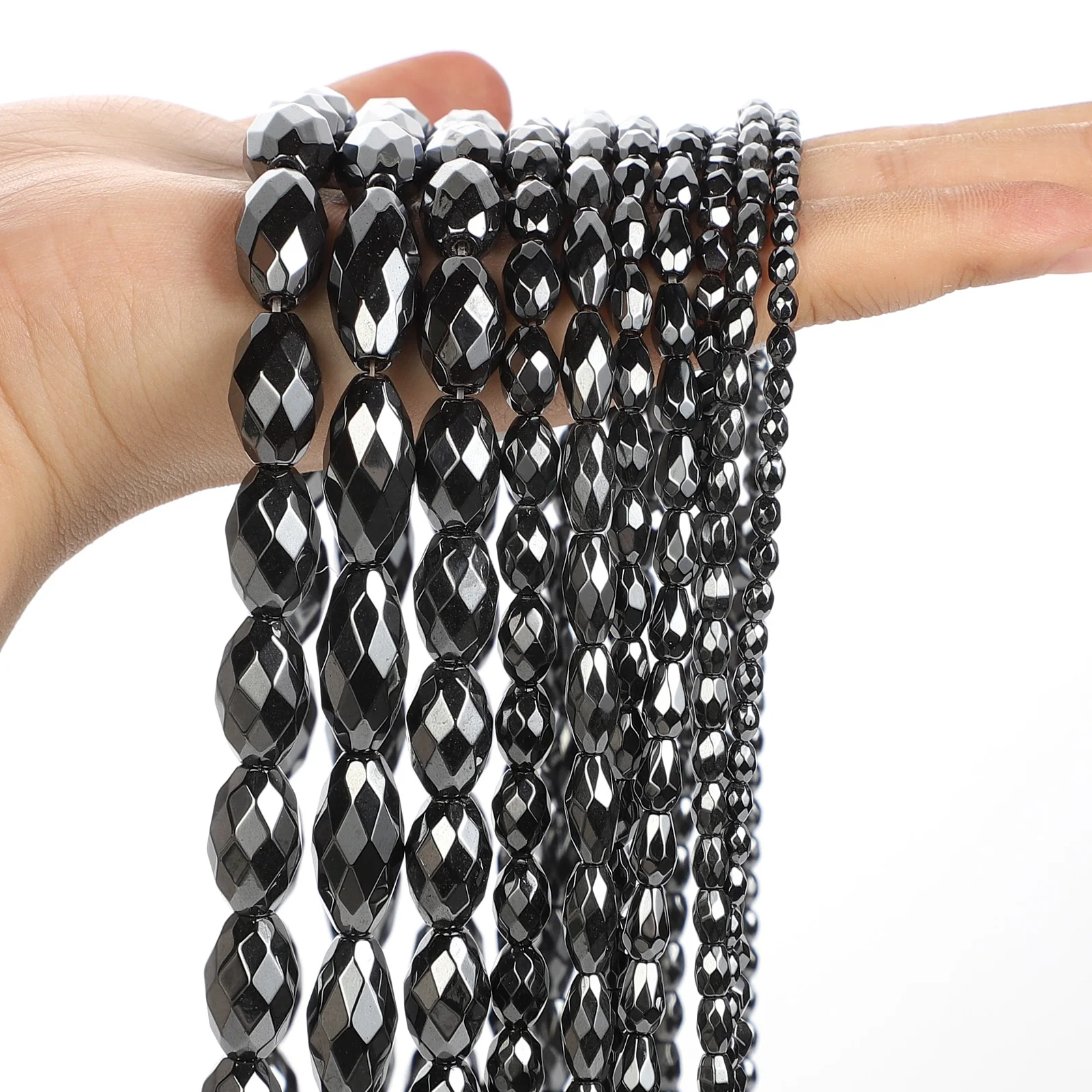 Бусины из натурального черного гематита в форме риса, 5-20 мм