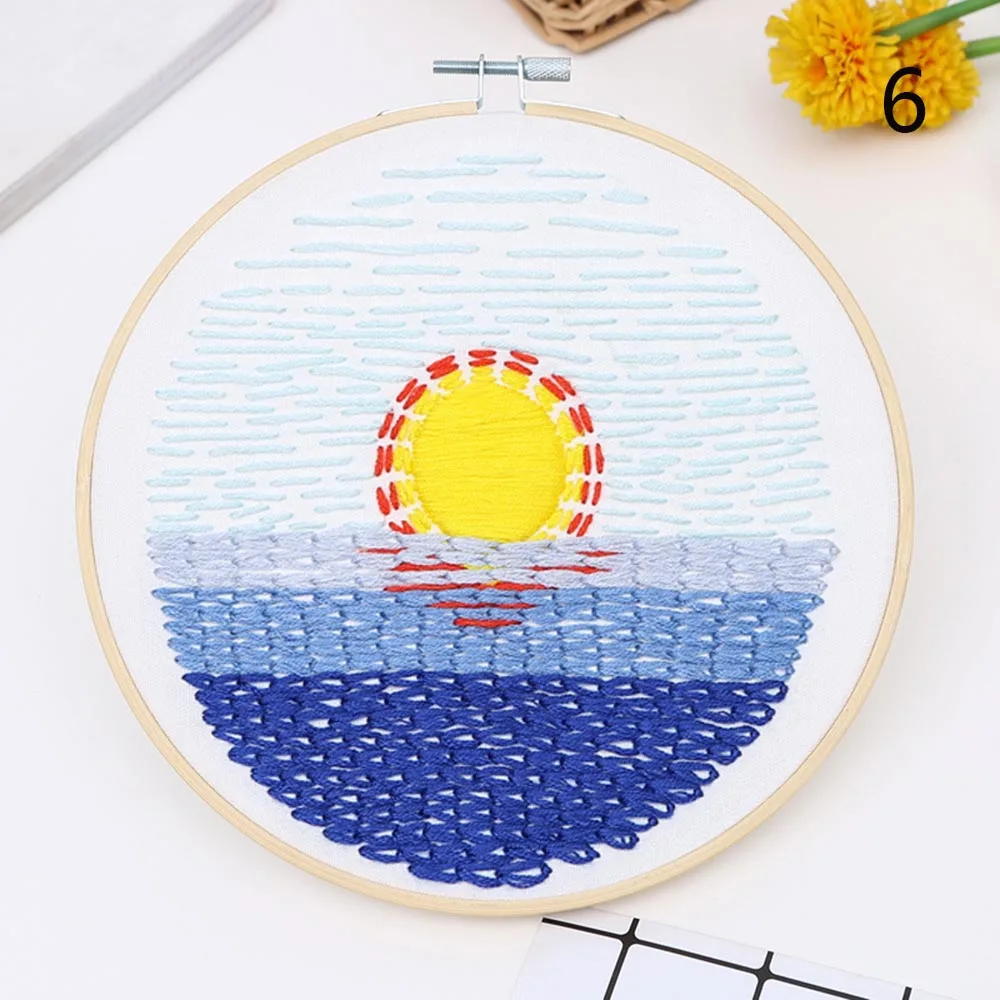 Набор для вышивки с рисунком пейзажа, набор для начинающих сделай сам с цветными нитями (без обруча), швейное искусство, ремесло, домашний декор