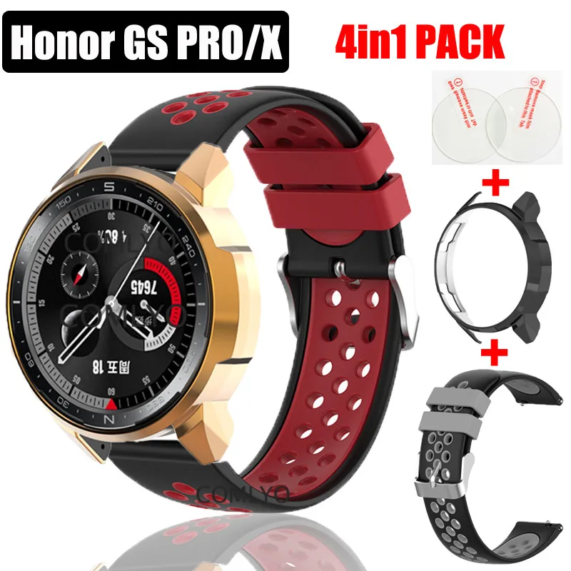 4in1 пакет для Honor GS Pro ремешок smart watch силиконовый спортивный ремешок ПК Жесткий чехол обложка + HONOR gs pro X стеклянная пленка протектора экрана