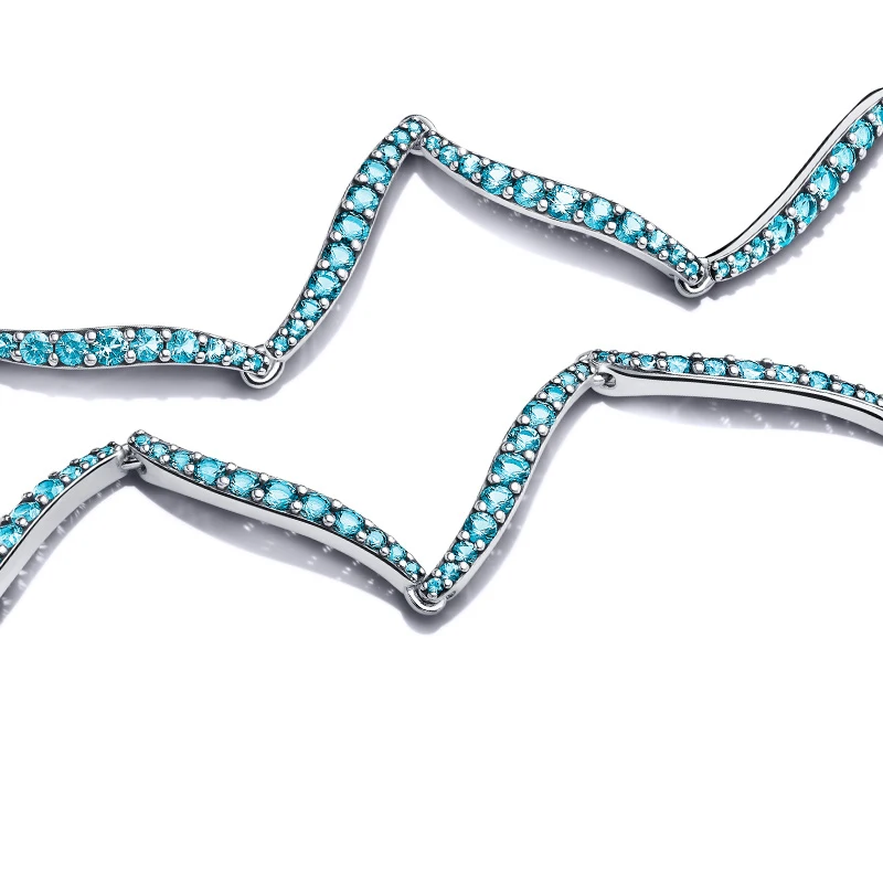Браслет женский из серебра 925 пробы с голубой волной и пряжкой