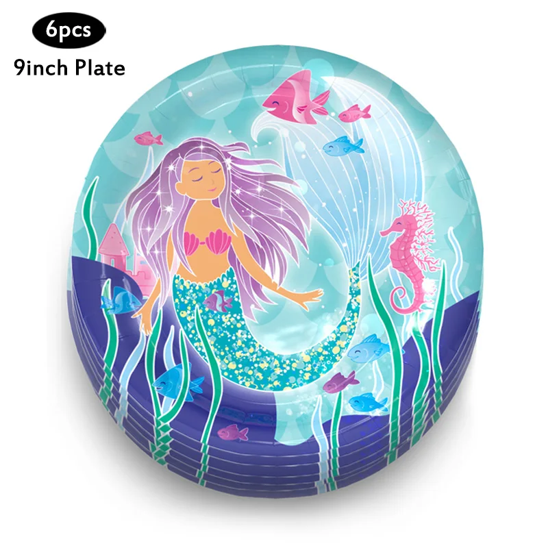 Русалка Вечерние флажки для торта ножевые тарелки бумажный стаканчик