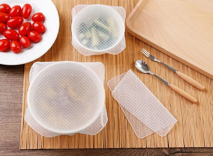 4 шт.лот многоразовая силиконовая обертка, уплотнение для сохранения свежести продуктов, крышка, растягивающаяся вакуумная обертка для пищевых продуктов, кухонные инструменты