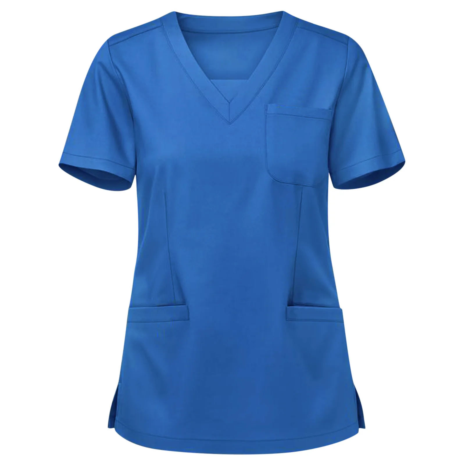 Однотонная Униформа с V-образным вырезом для медсестер и женщин, топы с коротким рукавом и карманами для работников здравоохранения, блузки, аксессуары для медсестер, рабочая одежда
