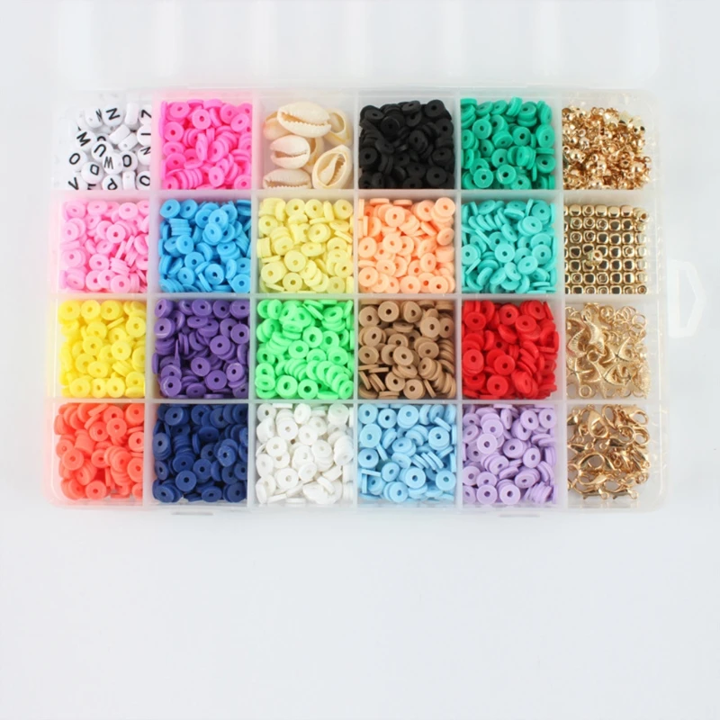 Набор для самостоятельного изготовления ожерелий, браслетов, сережек, круглые глиняные бусины, набор из 24 ячеек с веревками и бусинами, Набор для изготовления ювелирных изделий, домашняя металлическая смесь ручной работы