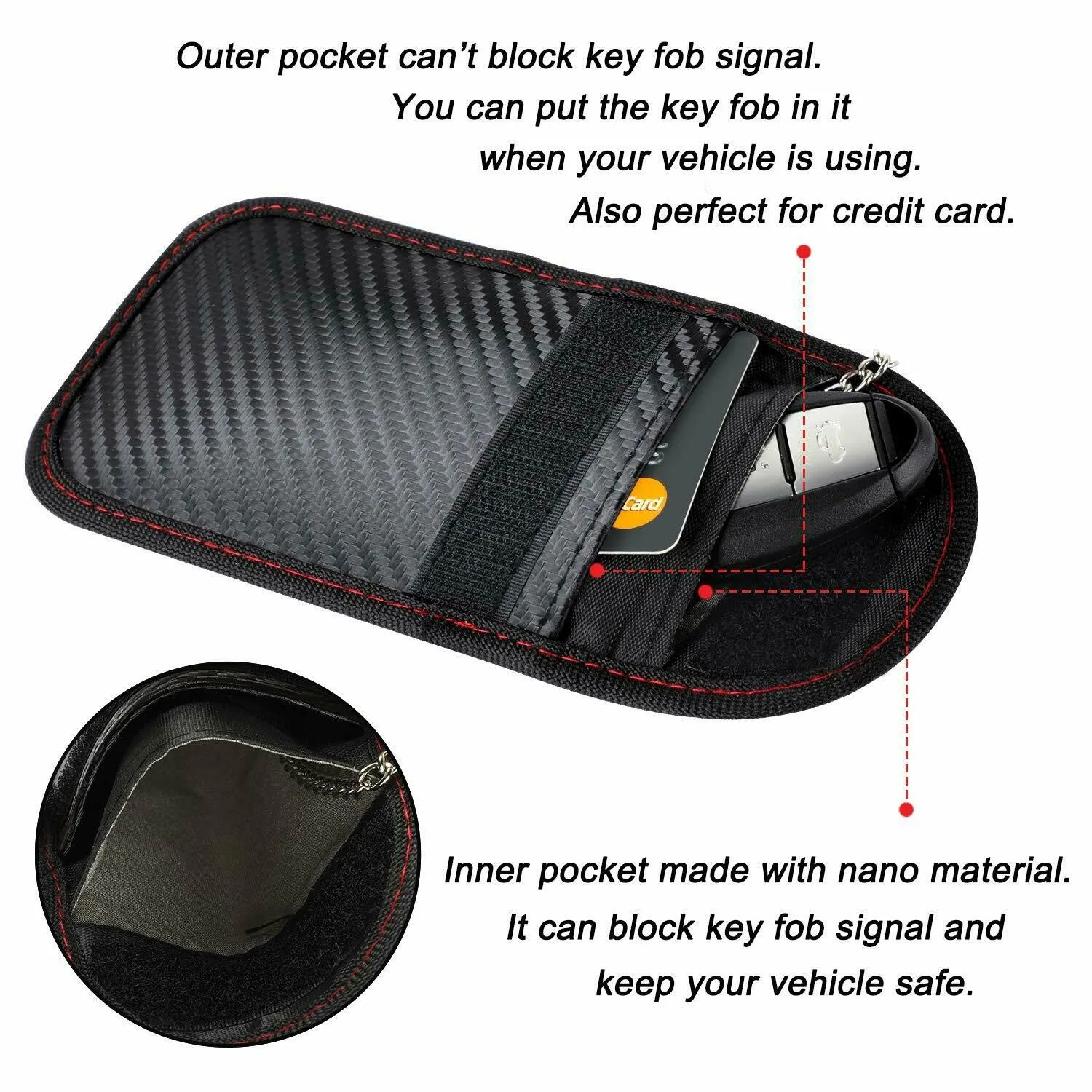 * BuTough, дизайн с двойным карманом: крышка, похожая на сумку, включает два внутренних рукава; Одна из них имеет металлическую подкладку для защиты сигнала, а другая-для общего хранения. Безопасная застежка на липучке и высококачественный водонепроницаемый корпус из синтетической кожи защищает ваши ключи от вреда.