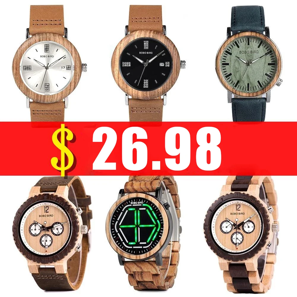 Деревянные кварцевые часы BOBO BIRD для мужчин и женщин, женские ча...