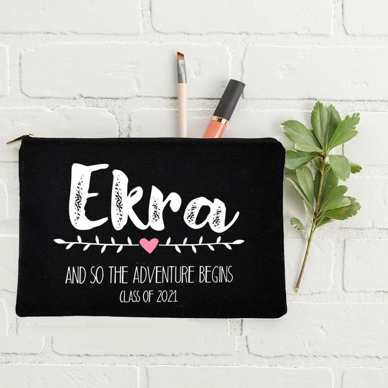 Индивидуальная Сумочка для макияжа на выпускной, подарок для старшей школы 2021 года, сумочки для косметики с именем на заказ, подарки для нее