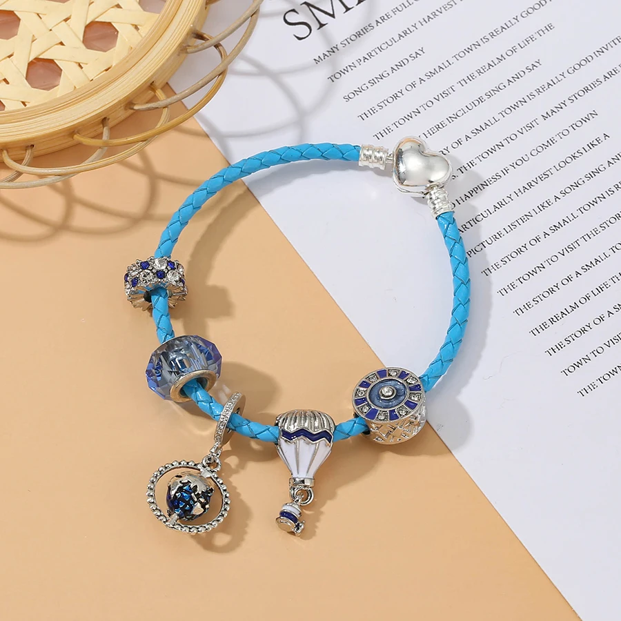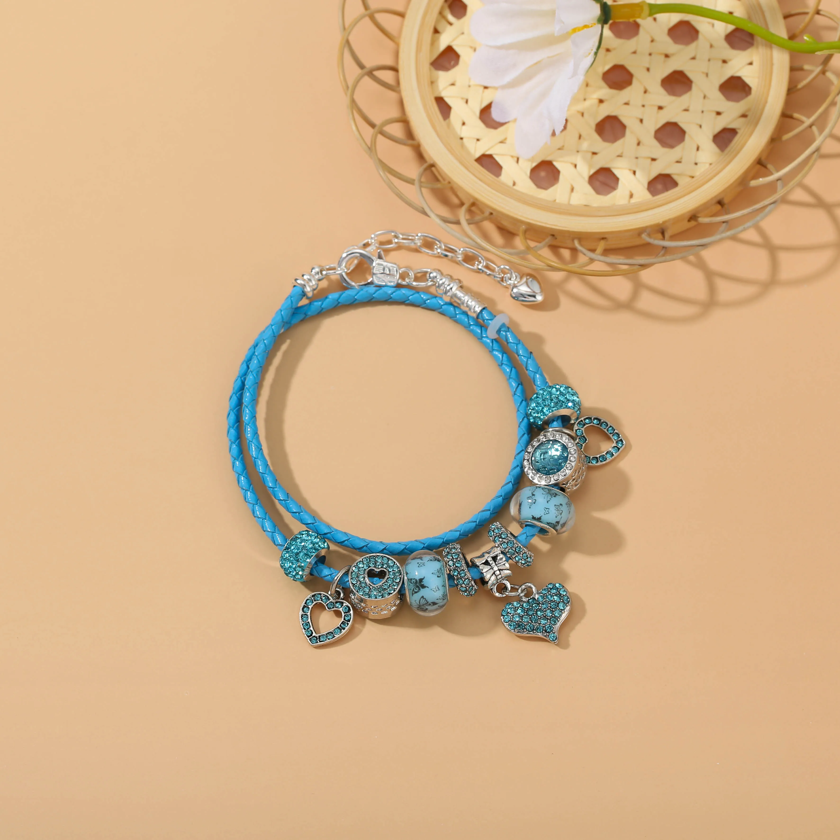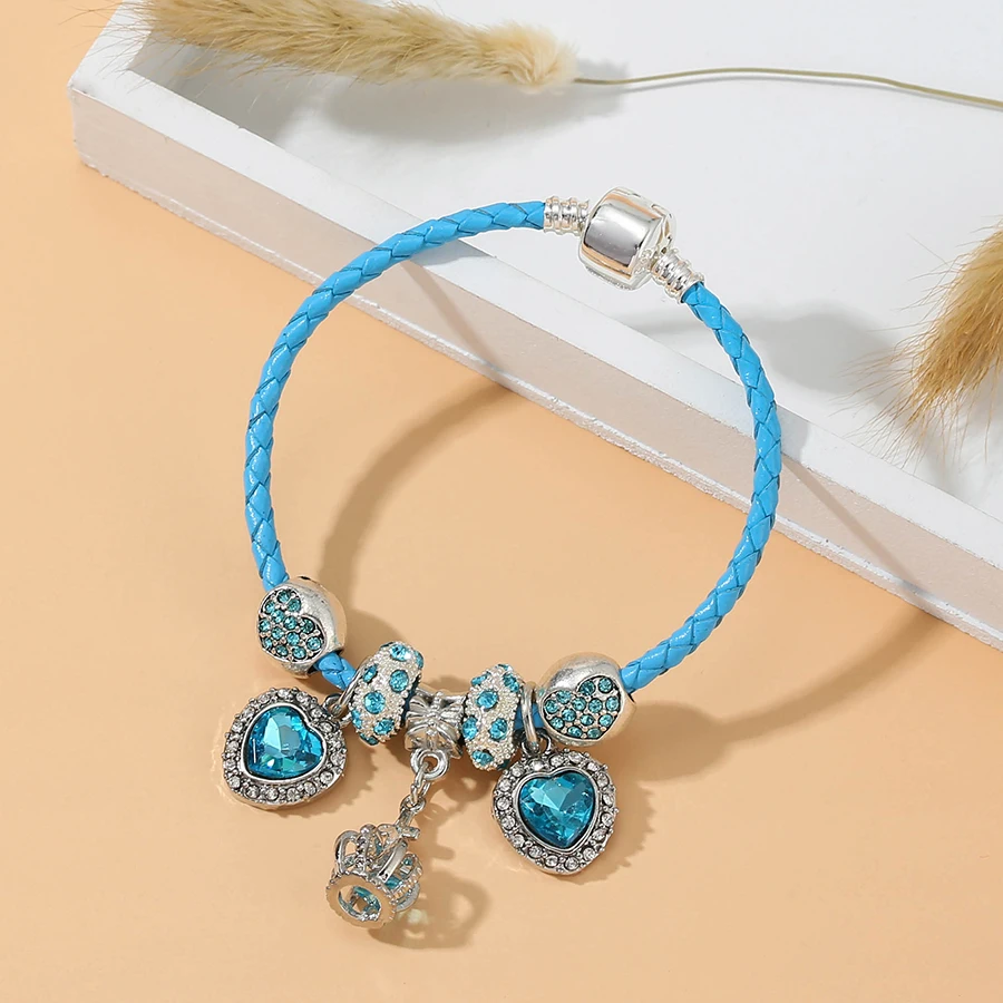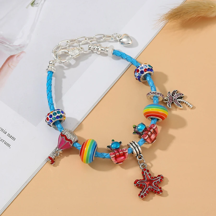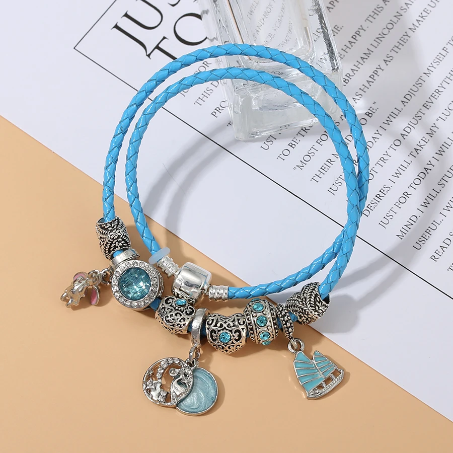 Buipoey, модные летние браслеты из голубой кожи в океаническом стиле для женщин и мужчин, бусины с морскими животными, корона, сердце, амулетный Сувенирный браслет