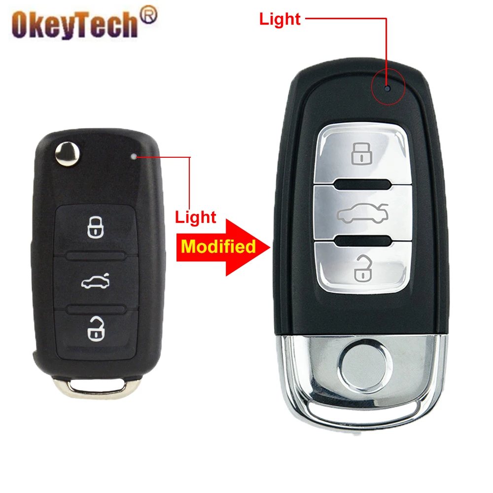OkeyTech 3 кнопки модифицированный дистанционный пульт дистанционного Управление брелок для ключей с кожаной крышкой для VW VOLKSWAG Caddy Golf Jetta Жук MK6 Polo Tiguan