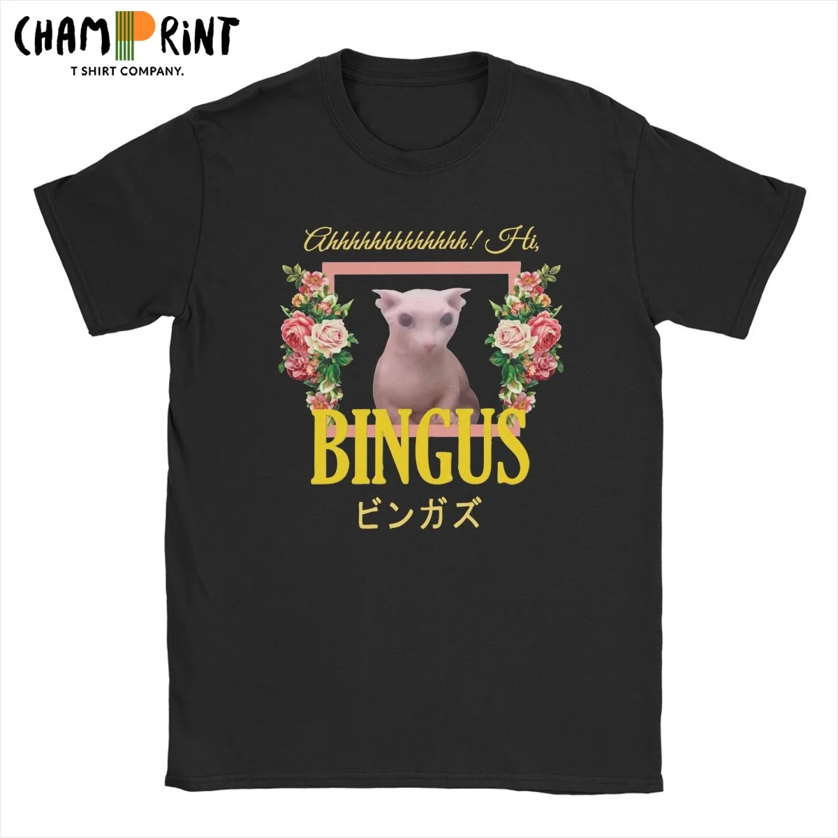 Повседневная футболка Bingus с цветочным принтом на сером Сфинксе, кошкой, Мужская футболка с круглым вырезом из 100% хлопка, футболки с коротким рукавом с цветочным принтом, одежда с принтом