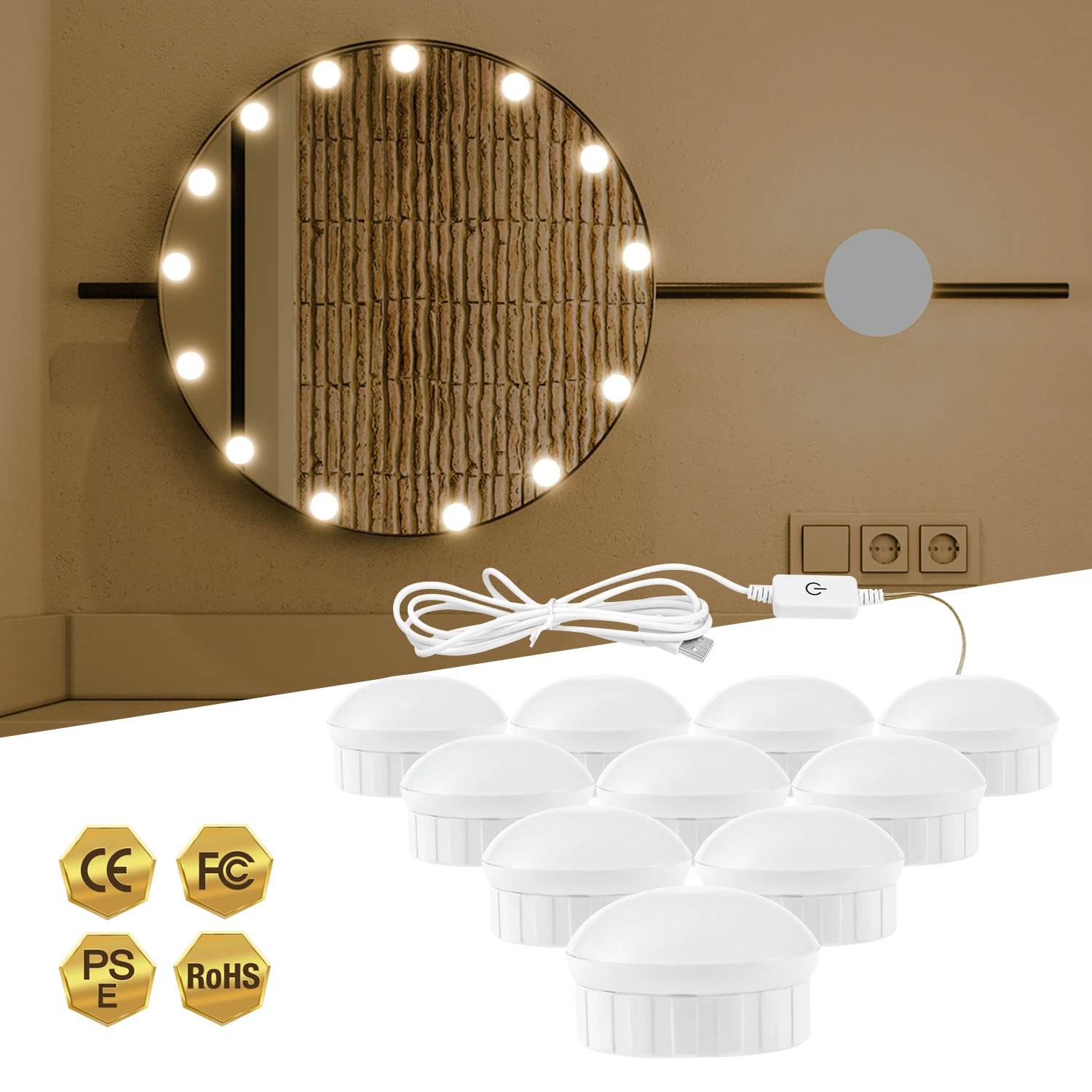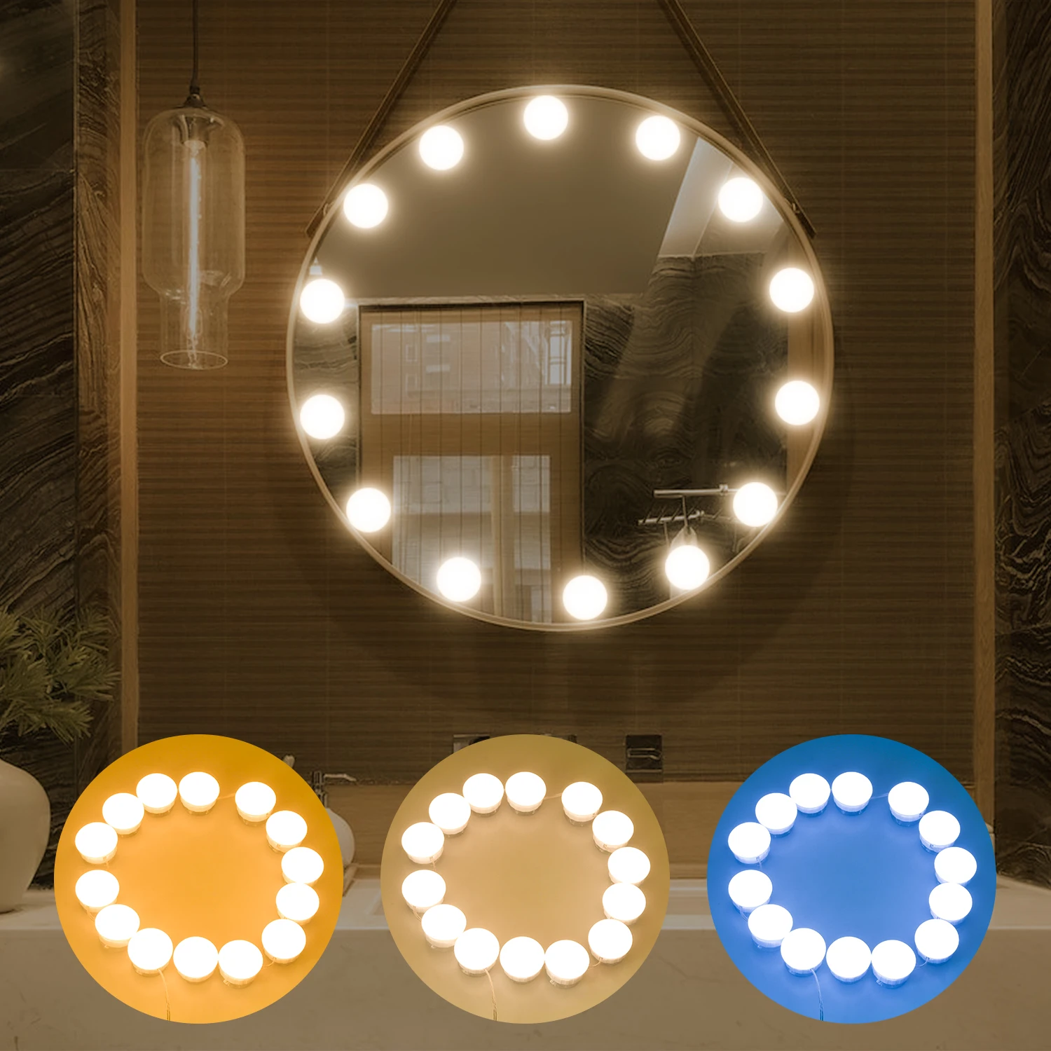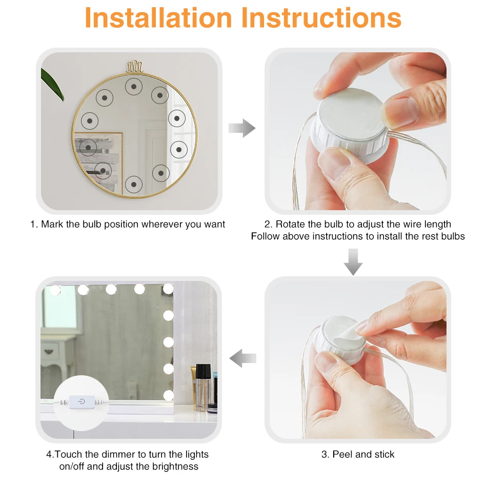 Приглушаемая лампа для косметики Hollywood, 3 режима, настенная Светодиодная лампа для макияжа, зеркала, туалетного столика, детской комнаты, кемпинга, вечеринки