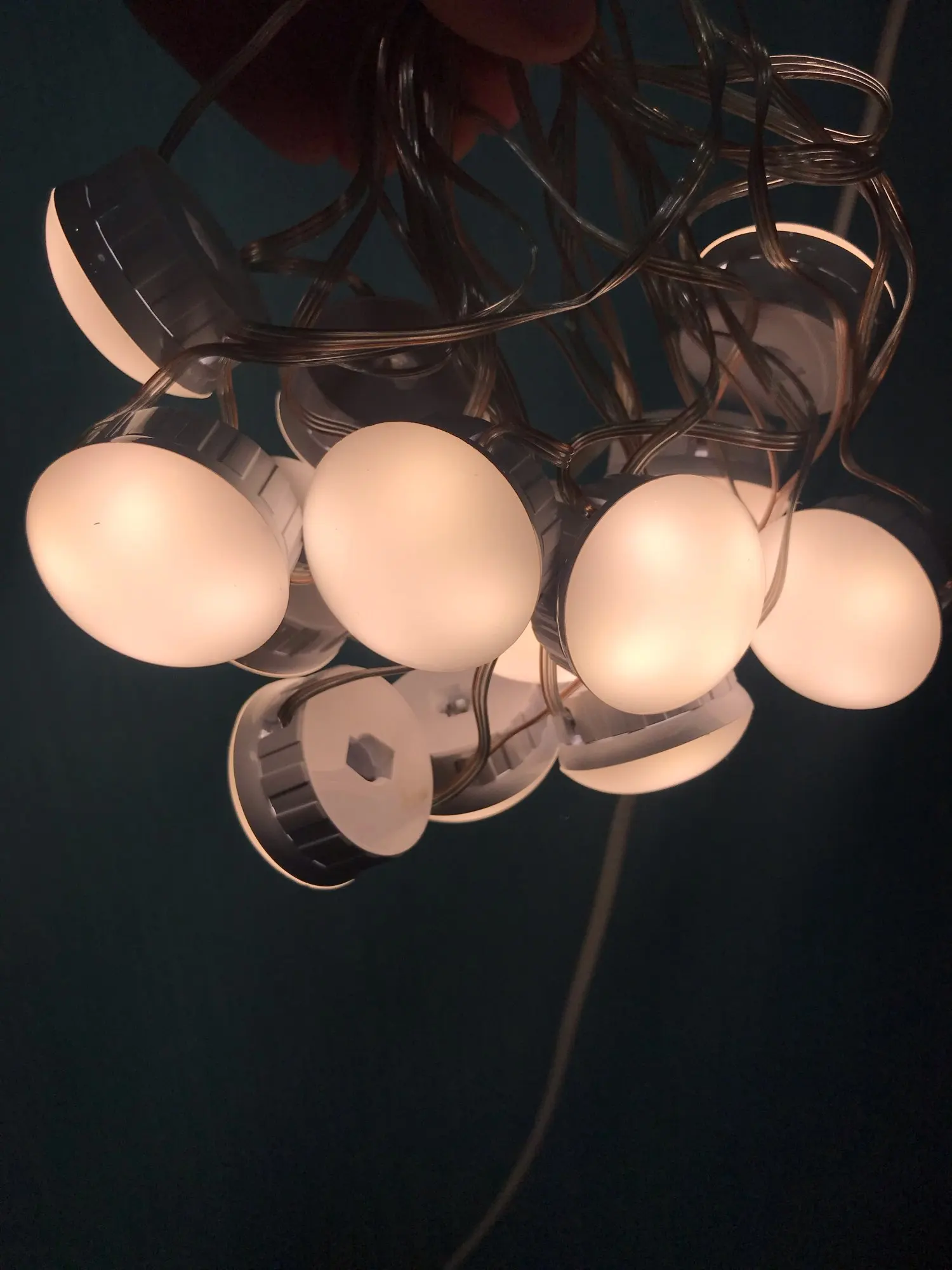 Лампочки на фото кажутся больше чем в реальности. Присоски отклеиваются, нужно приклеивать на двусторонний скотч из комплекта. Купил 10 лампочек за 833 рубля. Шли 15 дней. Яркость света зависит от мощности вашего зарядного устройства. Нужно было брать 14 лампочек.