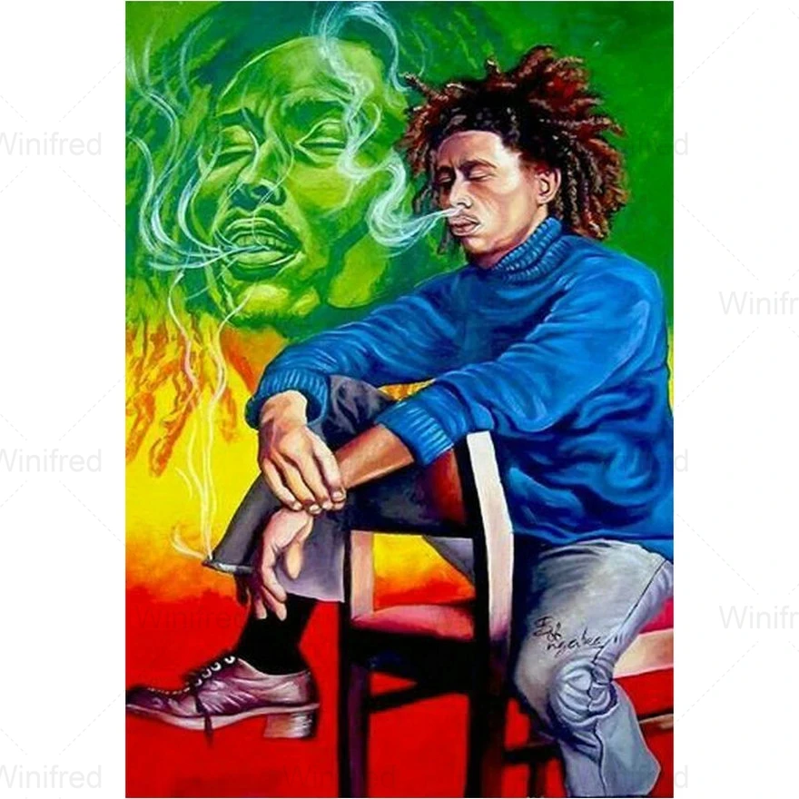 Картина из страз "сделай сам", портрет знаменитого музыканта Боба Марли, алмазная вышивка, регги, певец, полная выкладка стразы, мозаичная картина