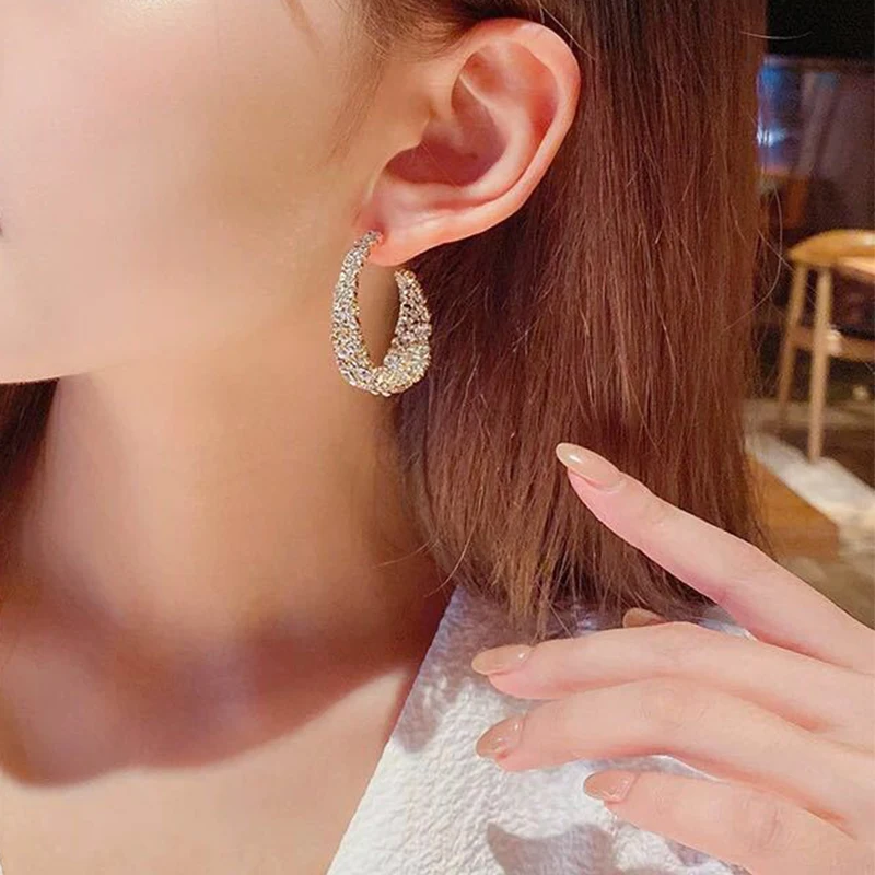 Изысканные блестящие серьги-кольца Стразы для женщин, подчеркивающи...