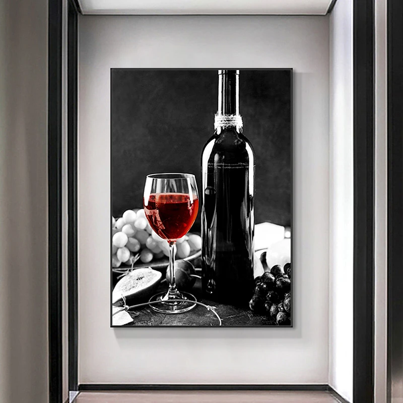 Современное искусство красное вино и бутылка кухонный плакат черный, белый цвет напиток Еда картины на холсте картины Обеденная Ресторан