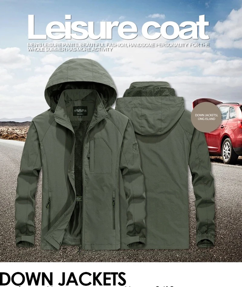 Куртка мужская водонепроницаемая, ветровка с капюшоном, стиль милит...
