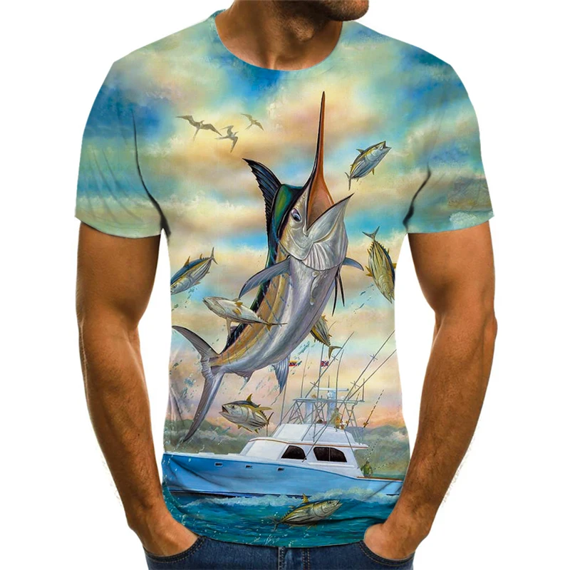 Футболка мужская и женская с 3D-принтом океанская рыба, Забавная де...