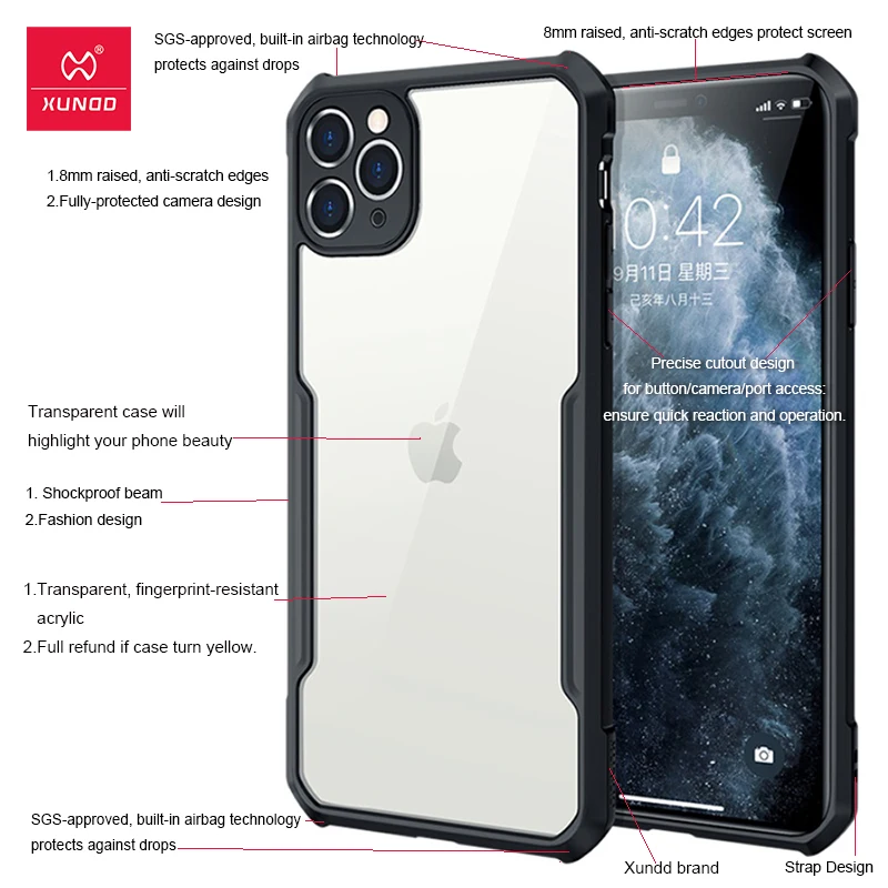 Xundd iPhone 11 чехол , Ударопрочный чехол Xundd для iPhone 11, защитный чехол для экрана, защитный чехол для телефона iPhone11 Pro Max, прозрачный чехол