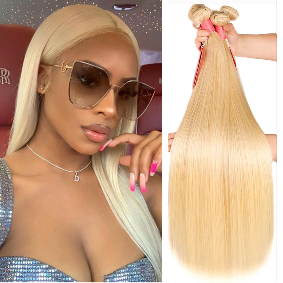 613 пряди Ков, 100% бразильские прямые пучки светлых человеческих волос, 130% плотность, 10 А, 613 пупряди ков светлых волос, волнистые пупряди волос Maxine