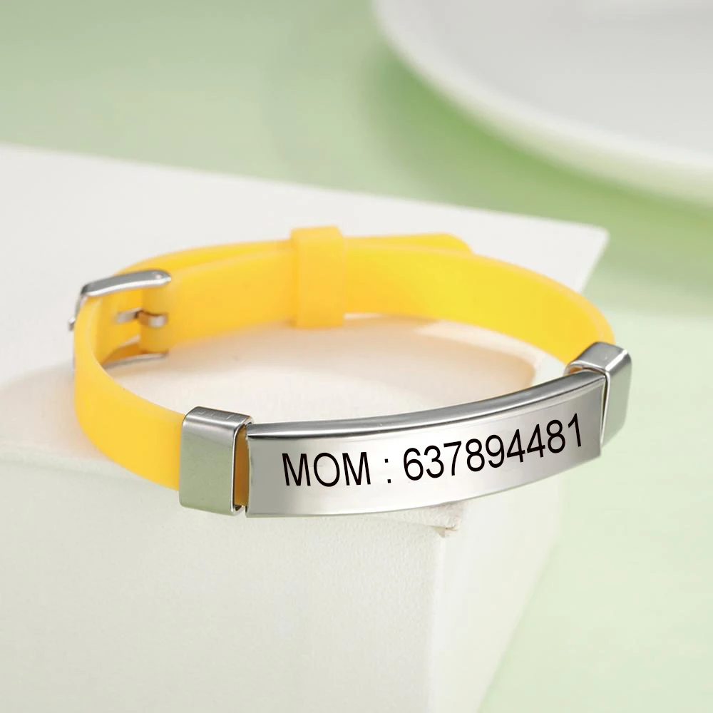 Lemegeton пользовательский браслет SOS ребенок силиконовые дети ребенок персонализированные имя, номер телефона браслет из нержавеющей стали ювелирные изделия