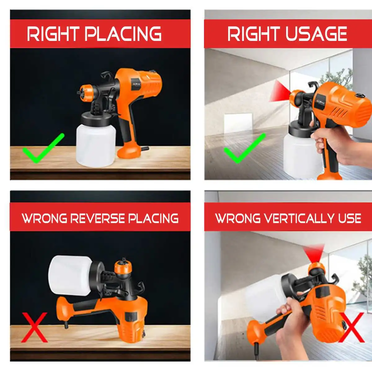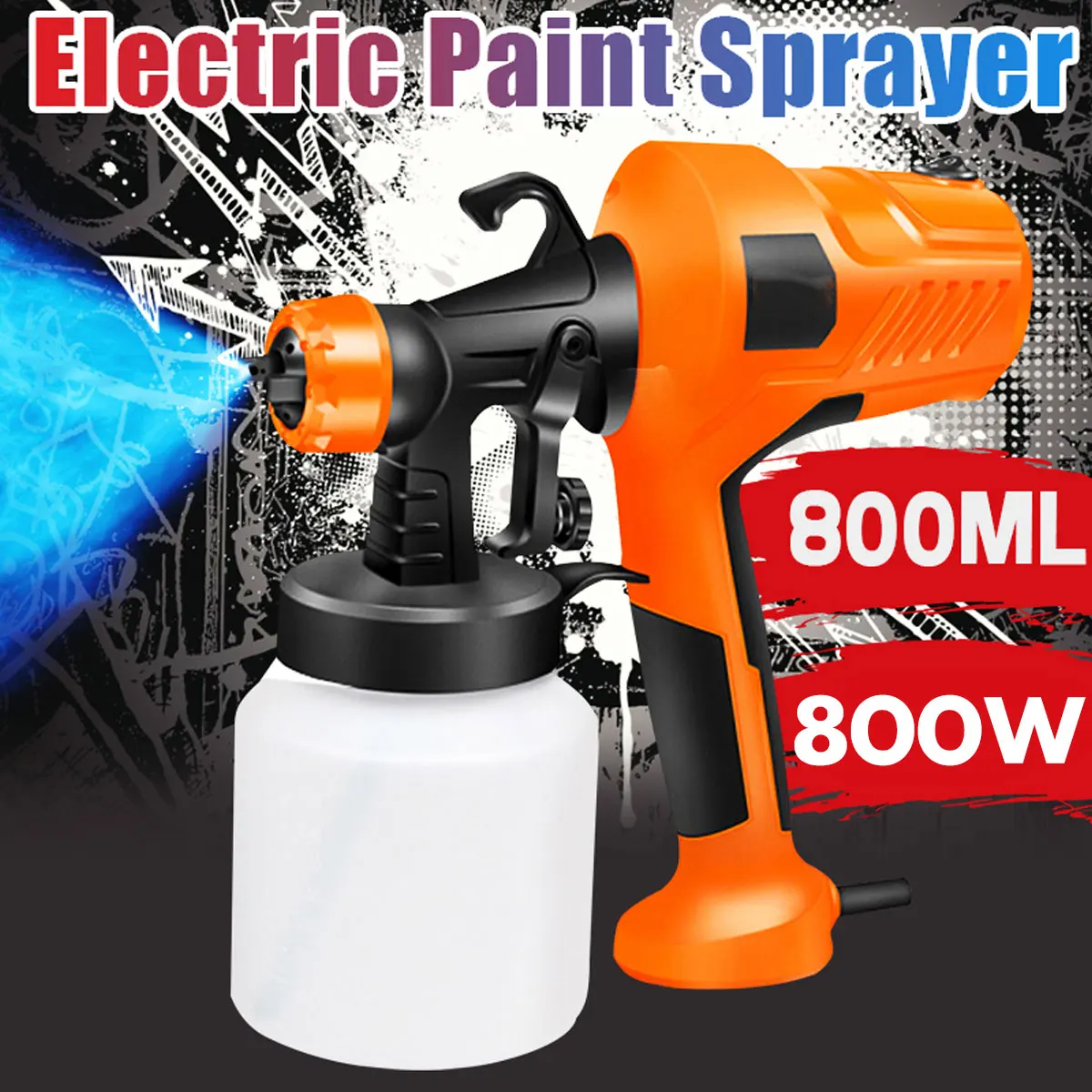 Посылка включает в себя:1 x Электрический распылитель краскиОсобенности:-Поставляется в комплекте с бабочкой объемом 800 мл.-Делает большие картины проще и быстрее.-Регулируемый поток сопла и скорость скручивания.-Встроенный полностью медный мощный двигатель.-Широкое применение. Идеально подходит для внутренних и наружных стен, дверей, окон, заборов и ворот.-Можно использовать с акриловыми или эмалевыми красками, лаками и красками для загара.Спецификация:1. Название: 800 Вт Краскораспылитель2. Модель: E137763. Материал: металл + пластик4. Цвет: оранжевый/белый (случайный цвет)5. Емкость горшка: 800 мл6. Пиковая мощность: 800 Вт Номинальная мощность: 500 Вт7. Напряжение: 220 В 50 Гц8. Макс. Поток: 480 мл/мин.9. Макс. Вязкость: 40 DIN-s10. Насадка Диаметр: 2,5 мм11. Размер: 250x150x130ммПримечание1. Перед использованием проверьте вязкость рисунка.2. Обратите внимание на использование и размещение. Не используйте вертикально.3. Ременбер для очистки после использования.4. Мы отправим вам подходящий адаптер в соответствии с вашим местоположением.5. Допускается небольшая погрешность из-за ручного измерения.