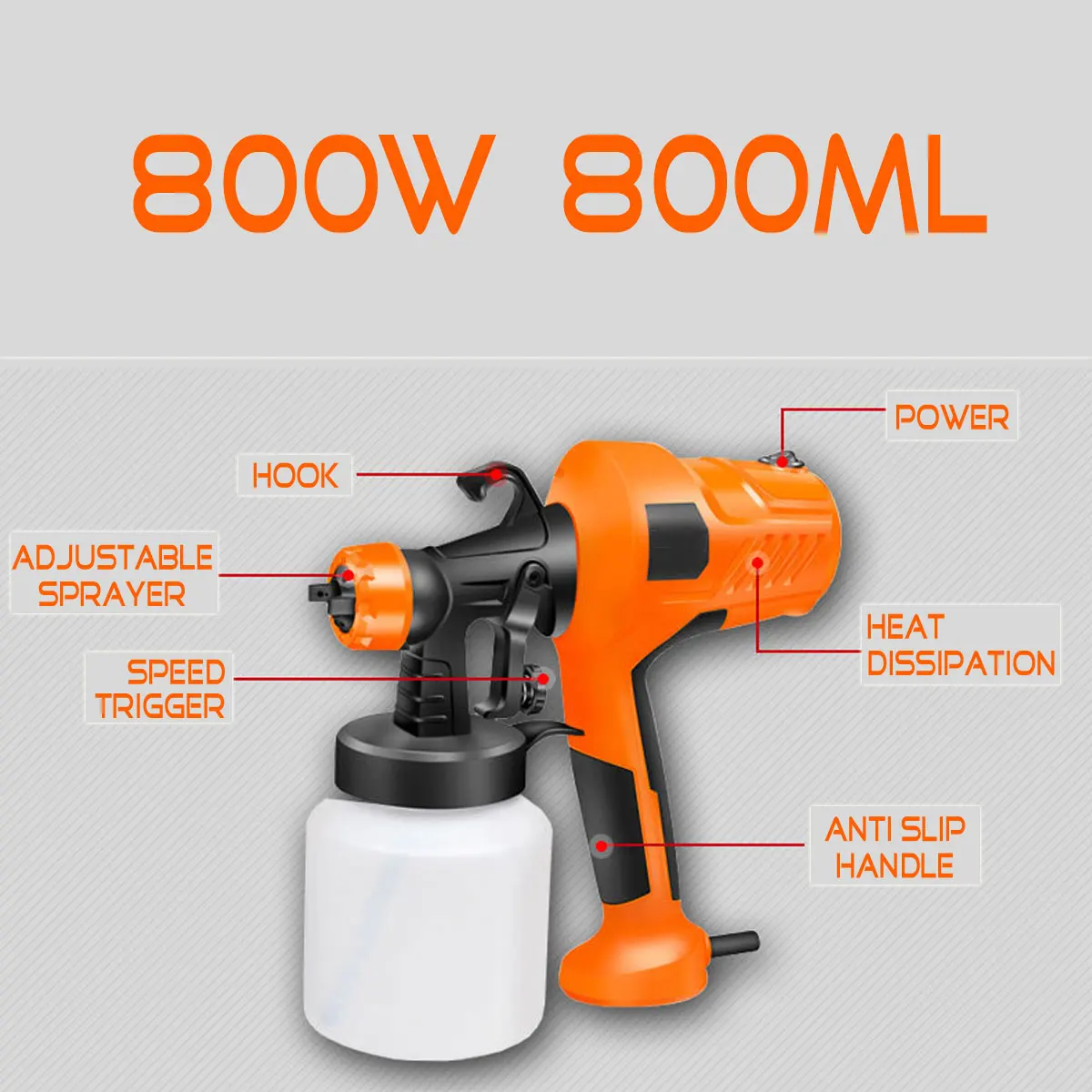 DOERSUPP 800 Вт Спрей пушка высокого Мощность Электрический Краски опрыскиватель Аэрограф пистолет 4 соплами и 800 мл большой Ёмкость HVLP простое распыление