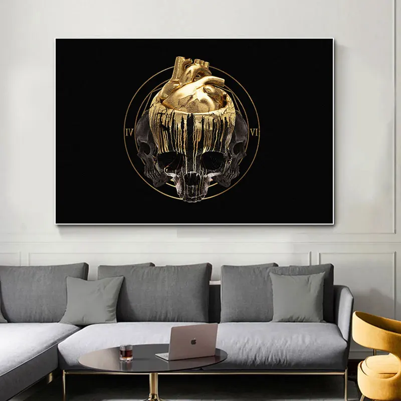 Холст с изображением черного золотого черепа и черепа, постеры и принты с золотым мозгом, современная абстрактная HD Настенная картина, Декор для дома, роспись