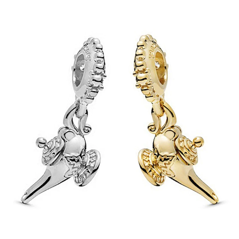 Диснеевской, подходят к оригиналу Pandora, браслет с шармами аниме цвета: золотистый, серебристый Цвет Волшебная Лампа Алладина кулон, сделай сам, ювелирное изделие для женщин браслет из бисера