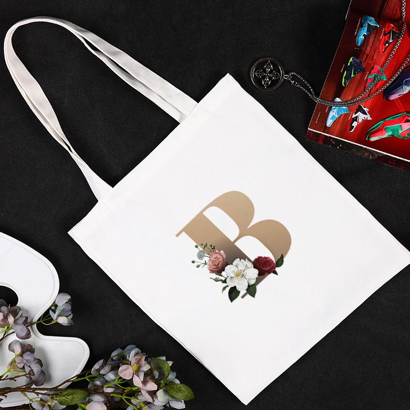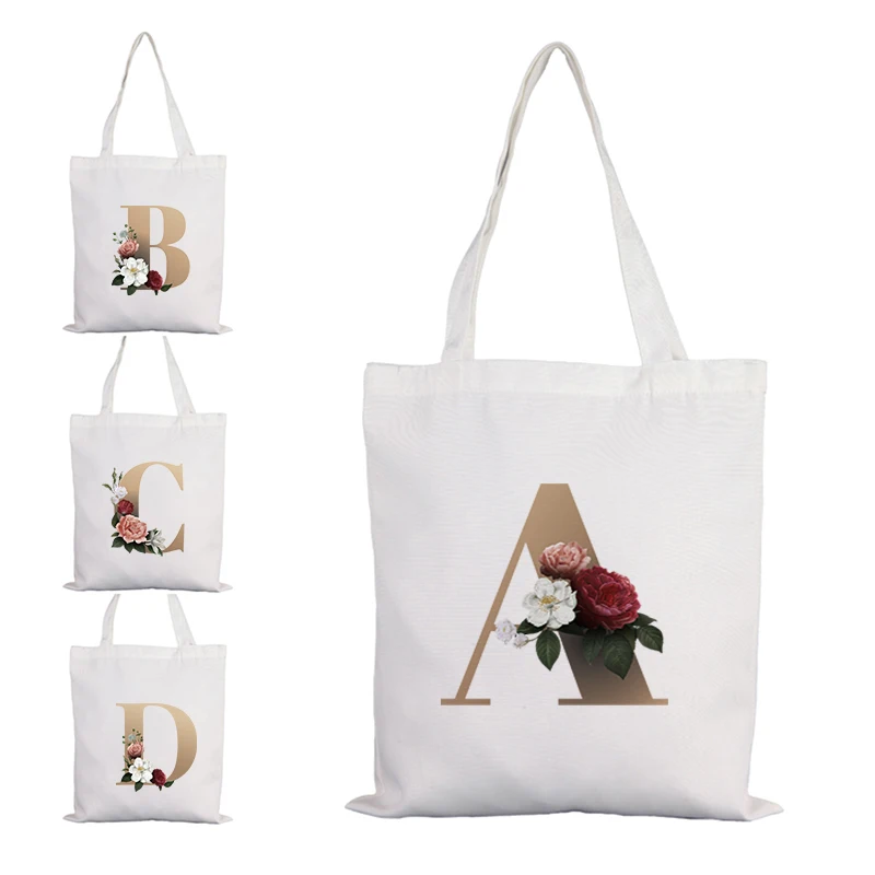 Сумки для покупок с цветочными буквами, настраиваемая тканевая сумка, большие дизайнерские сумки, холщовые сумки через плечо для покупок продуктов, сумка-тоут